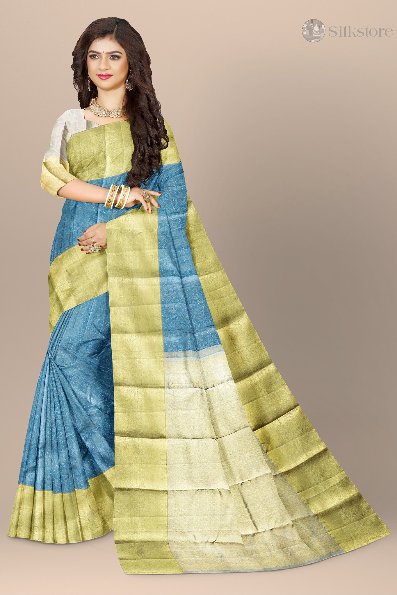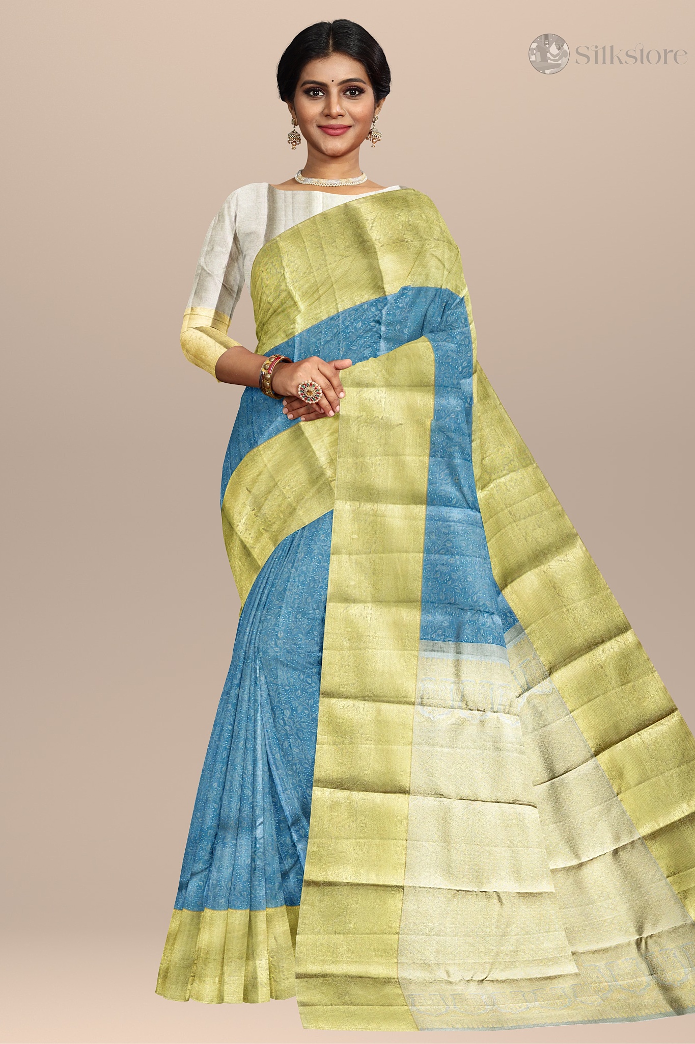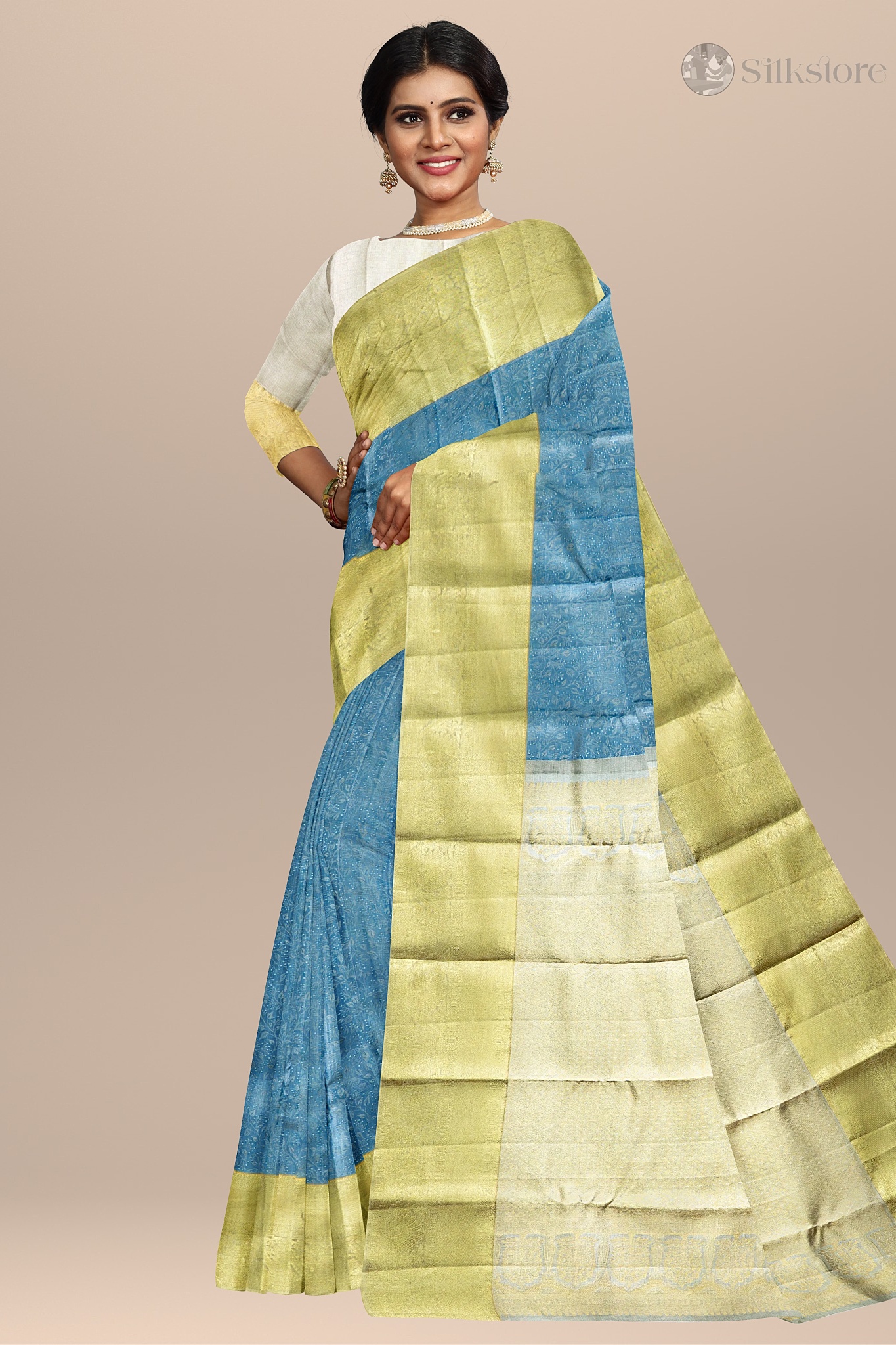 Azure Gold Elegance – Dual Tone kanjivaram Silk