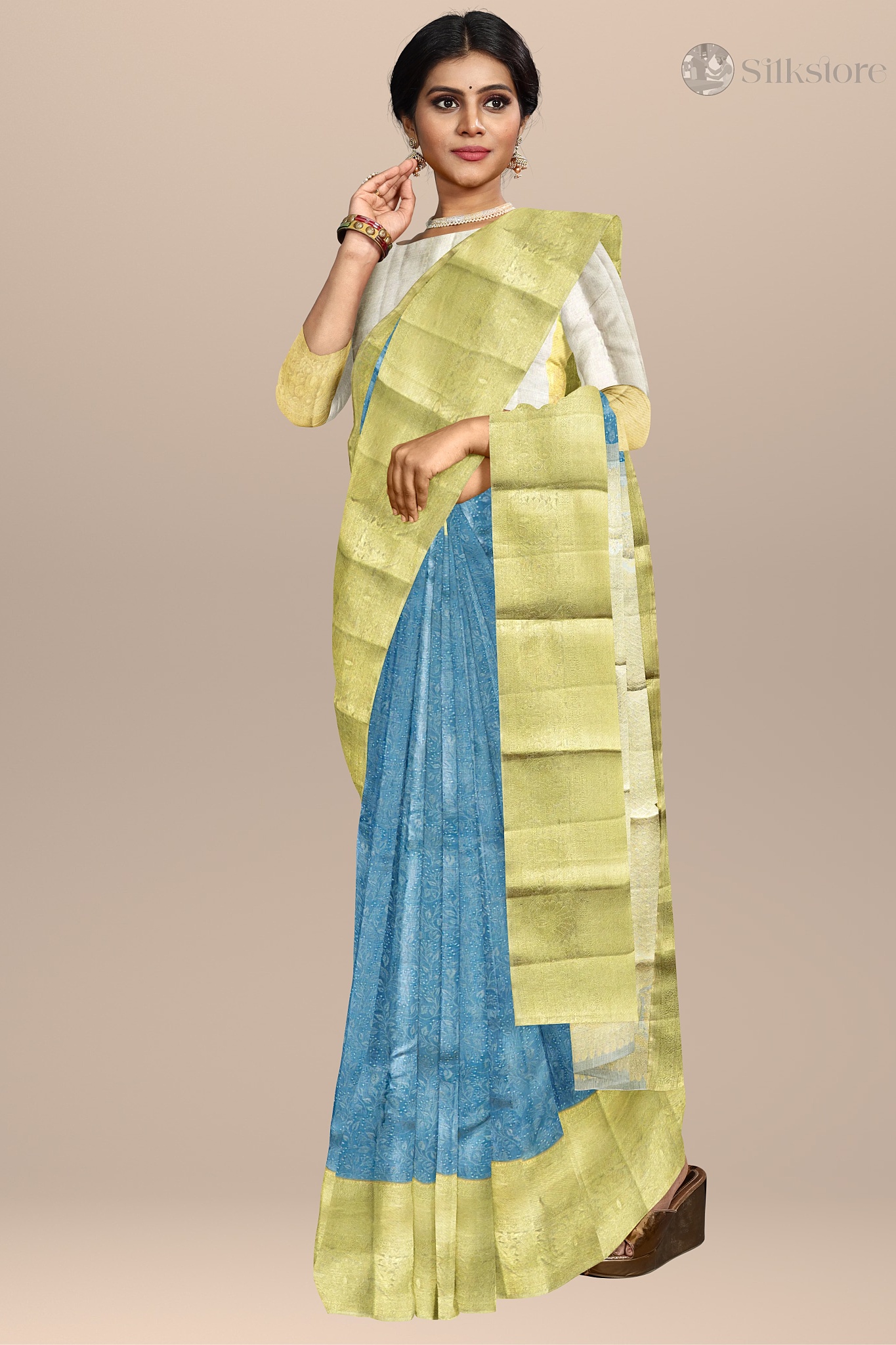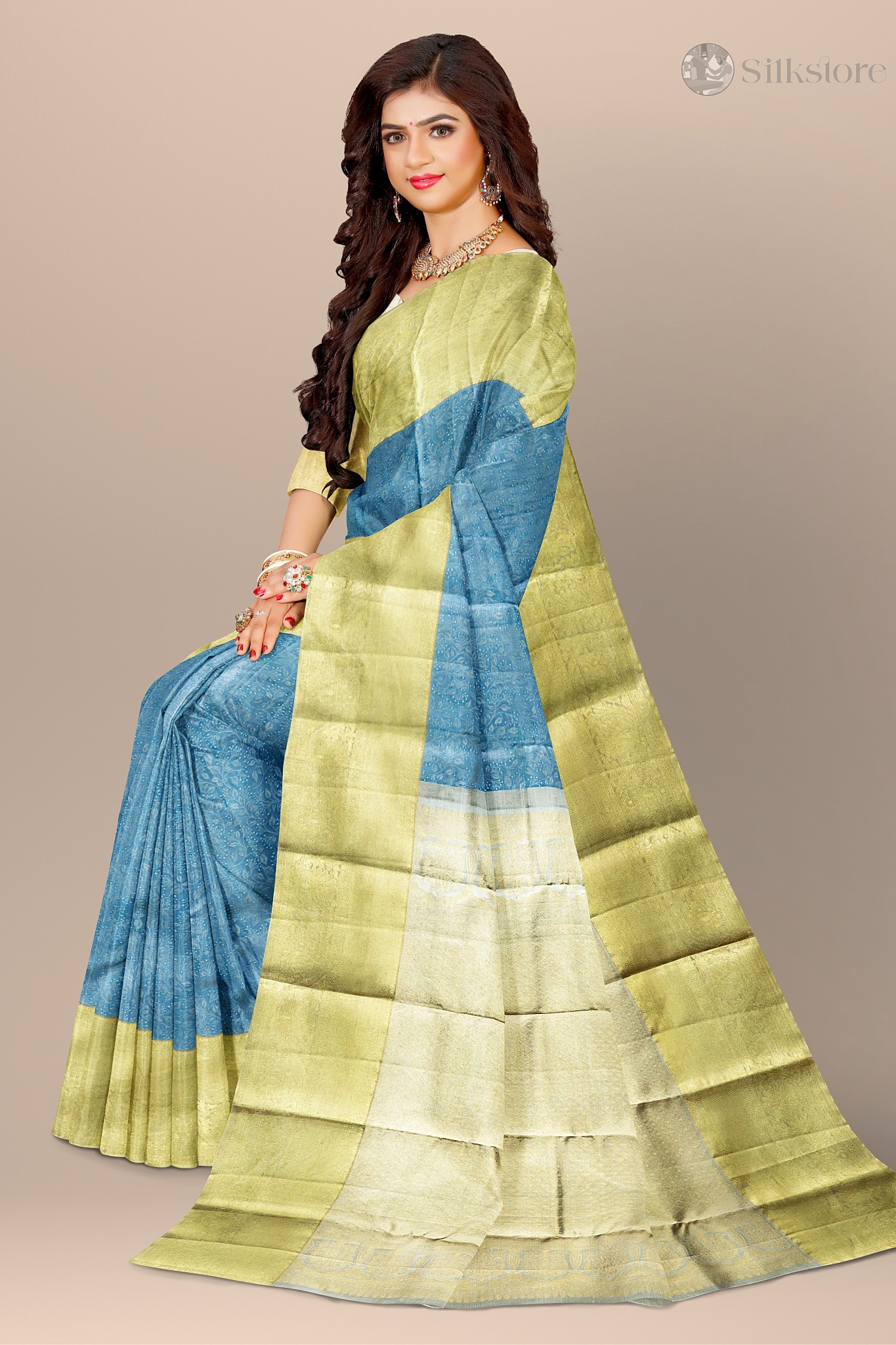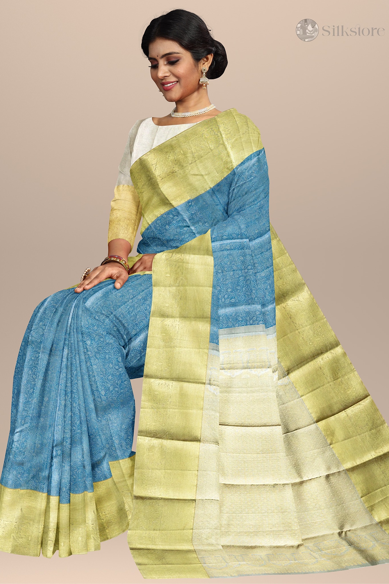 Azure Gold Elegance – Dual Tone kanjivaram Silk