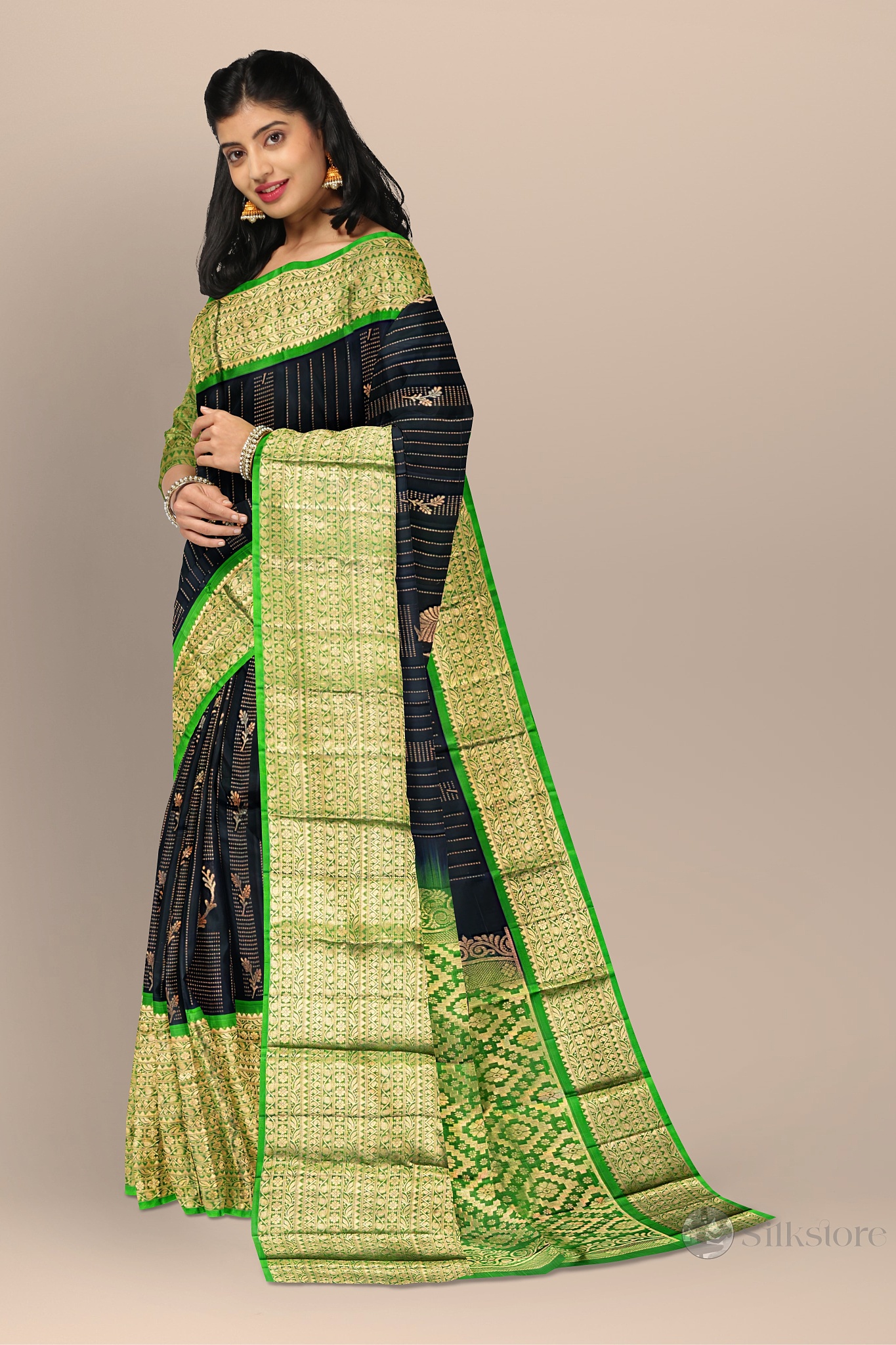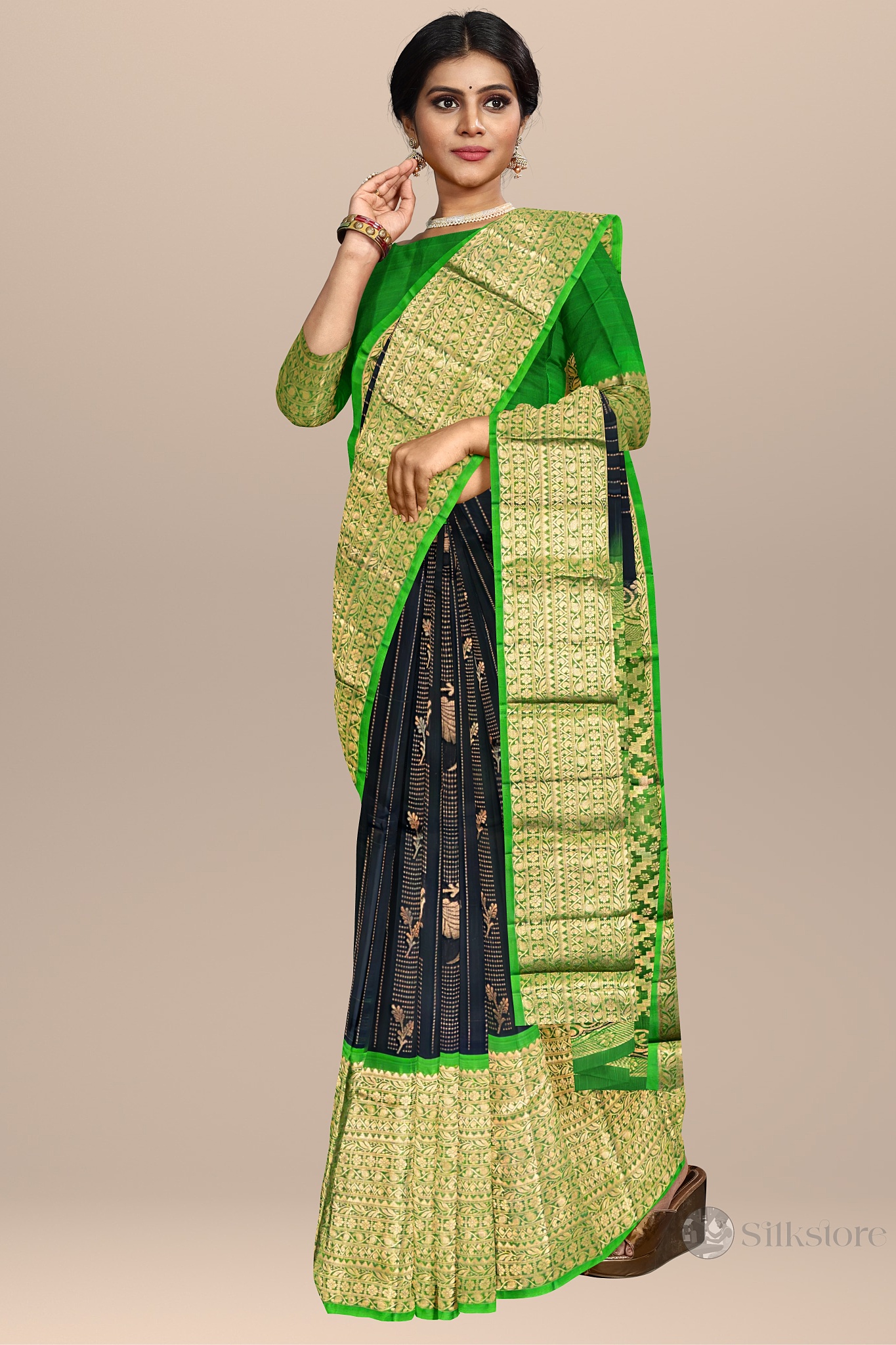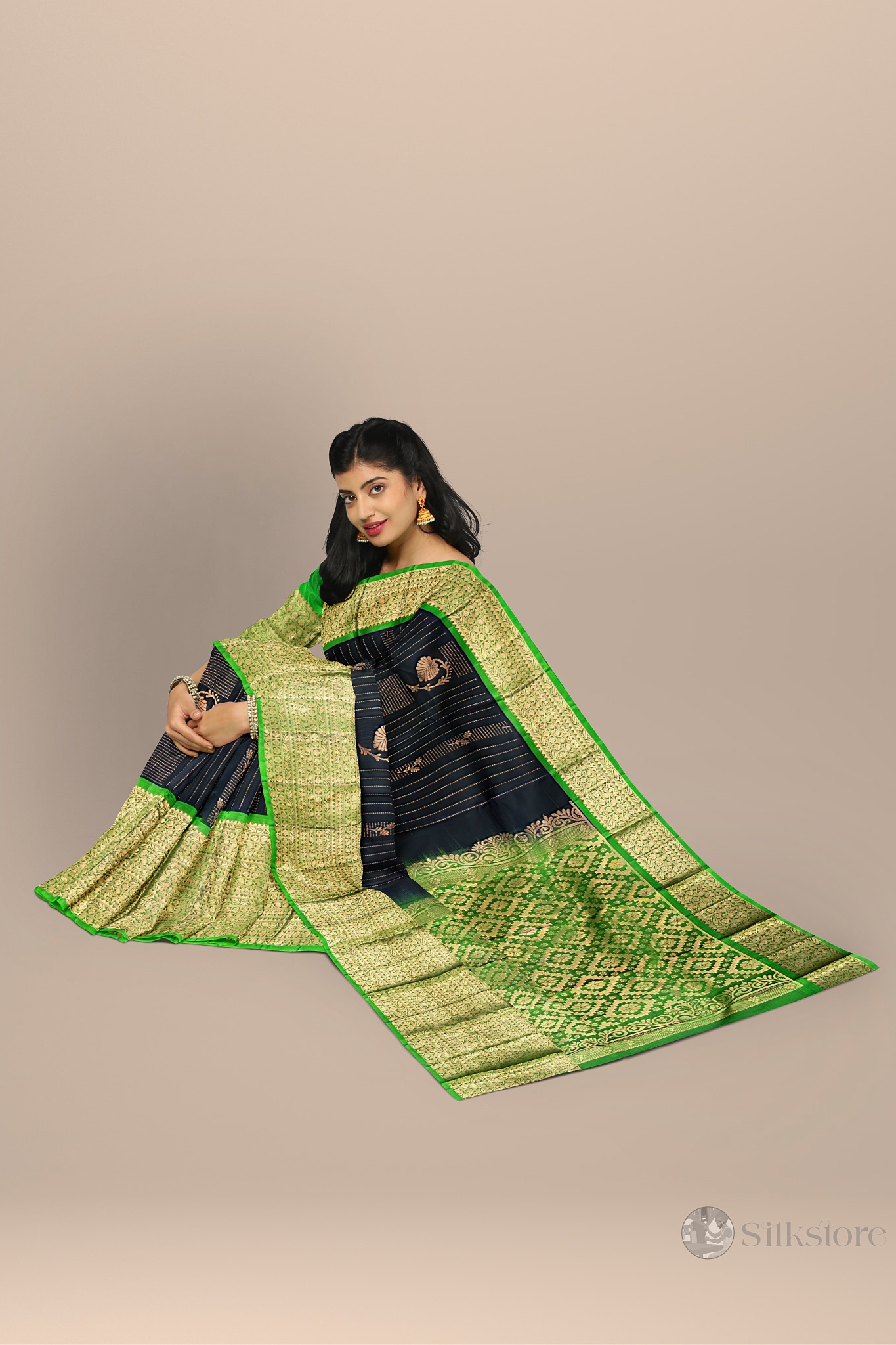 Classic Grace Handwoven Saree in Forest Green and Midnight Blue