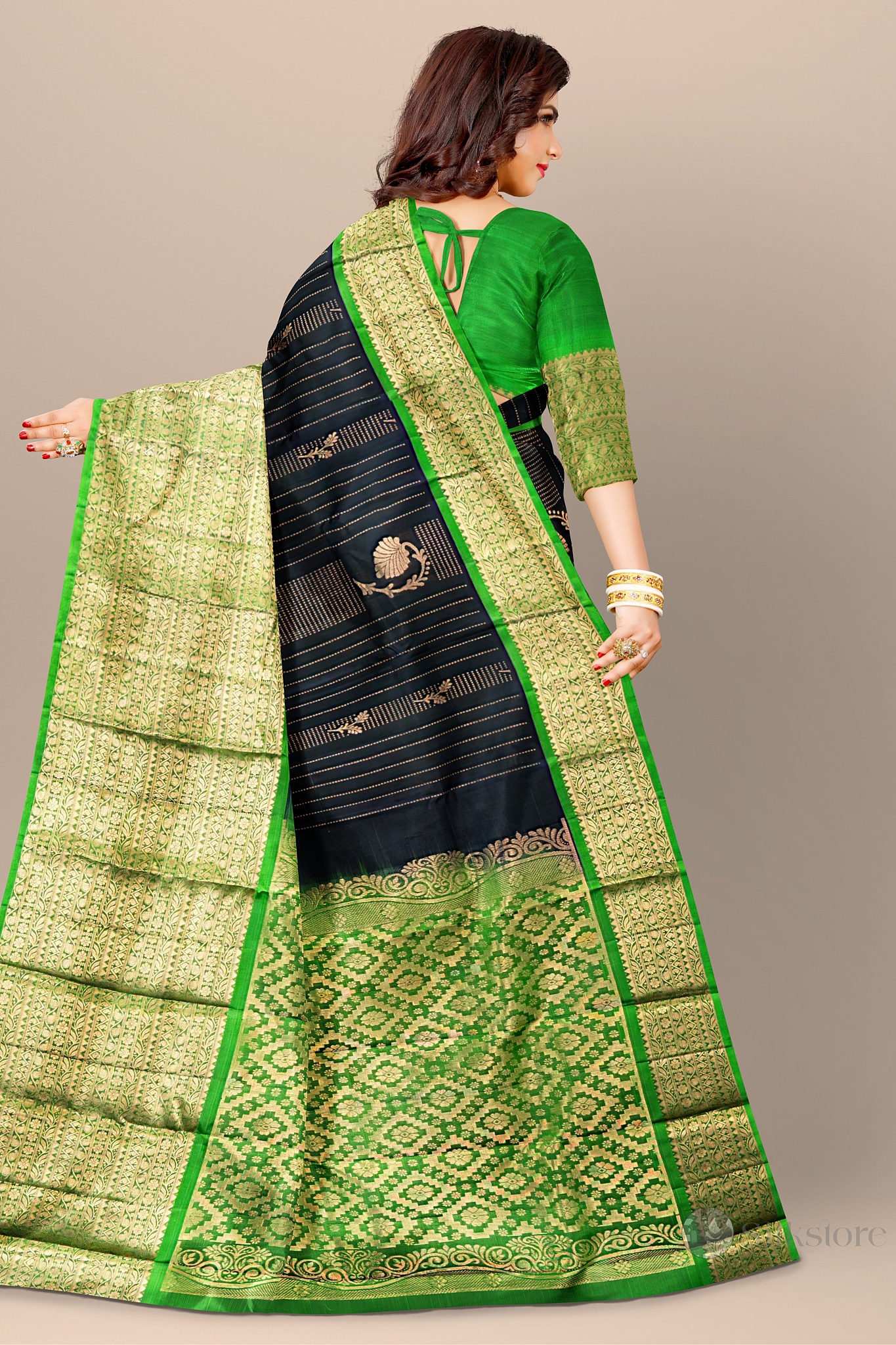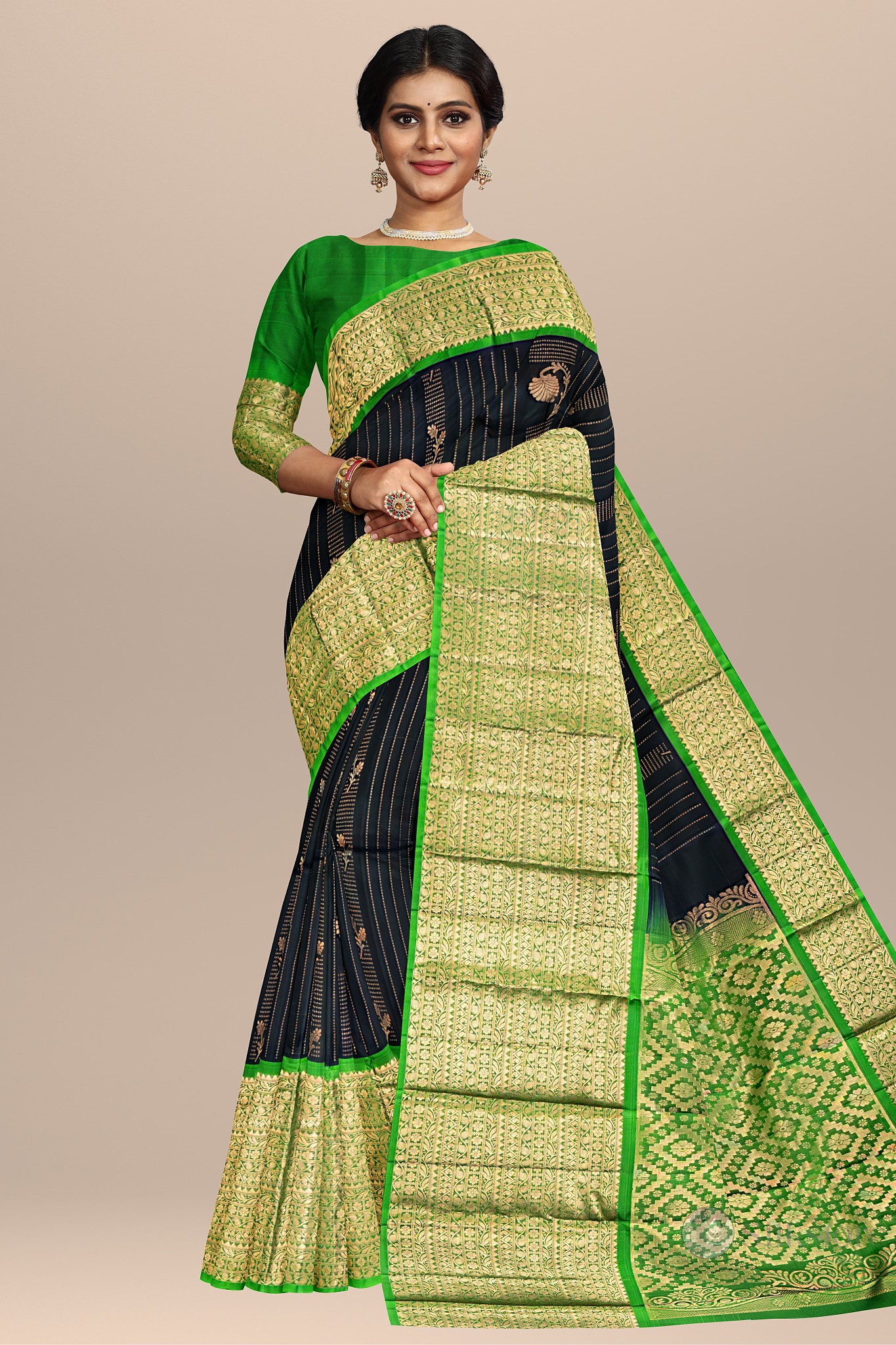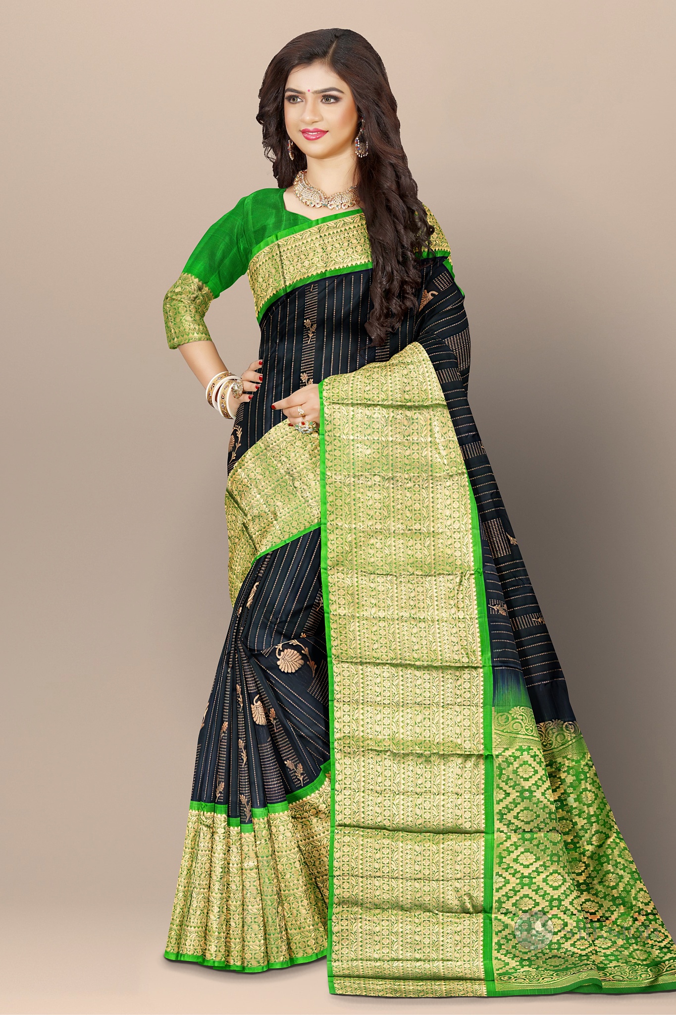 Classic Grace Handwoven Saree in Forest Green and Midnight Blue