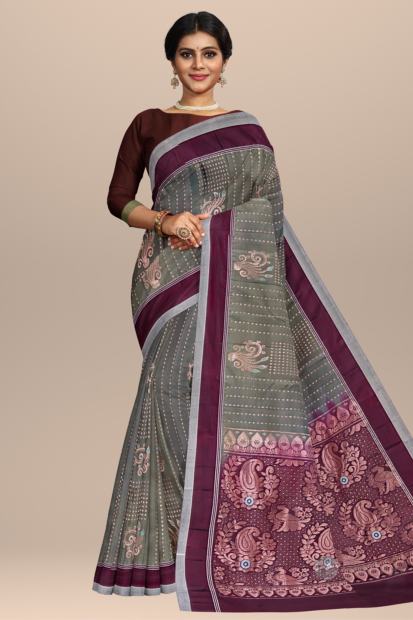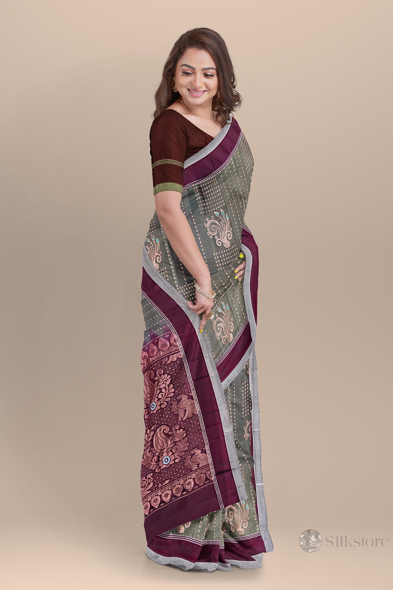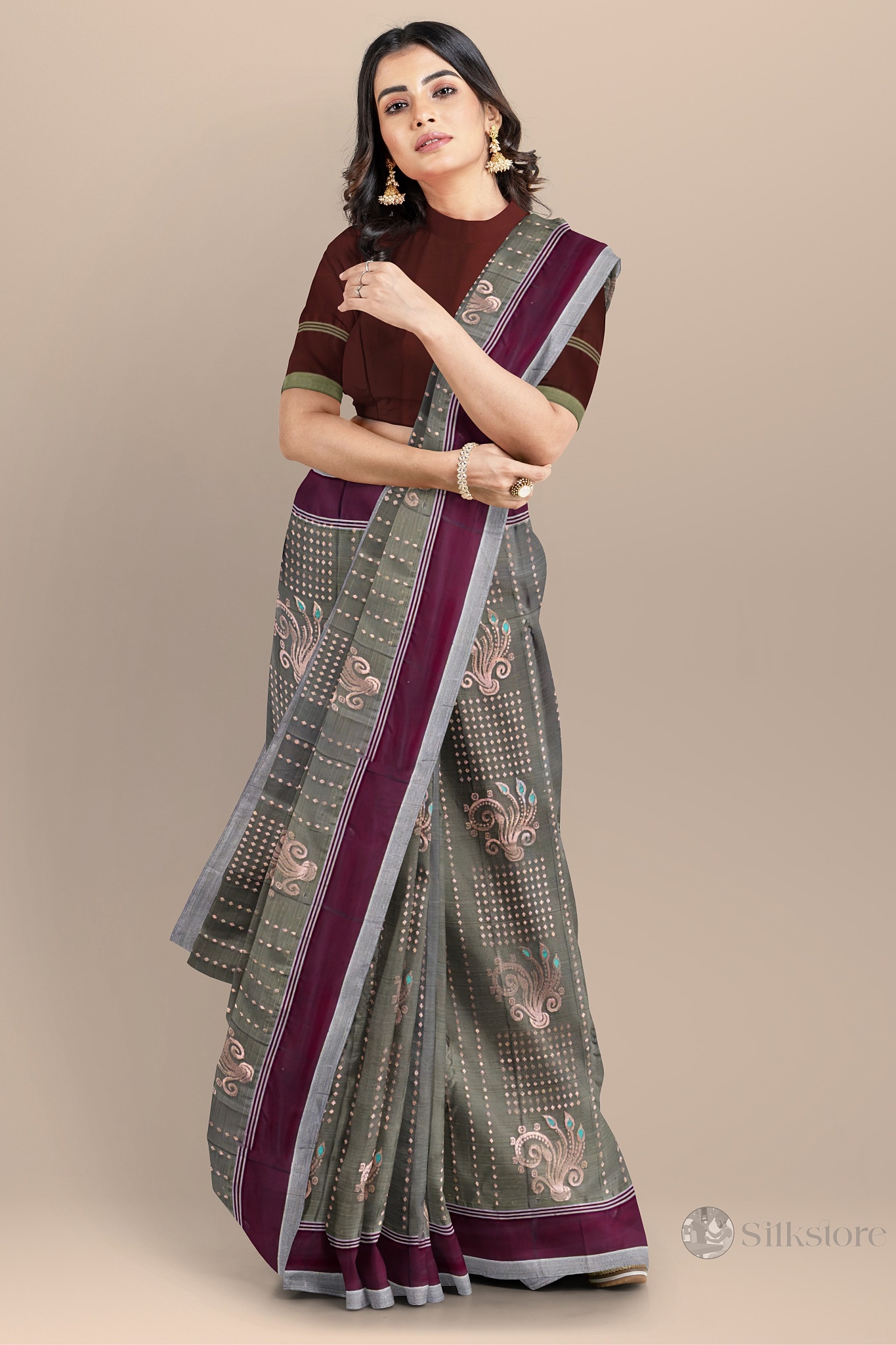 Classic Maroon and Olive Handwoven Saree