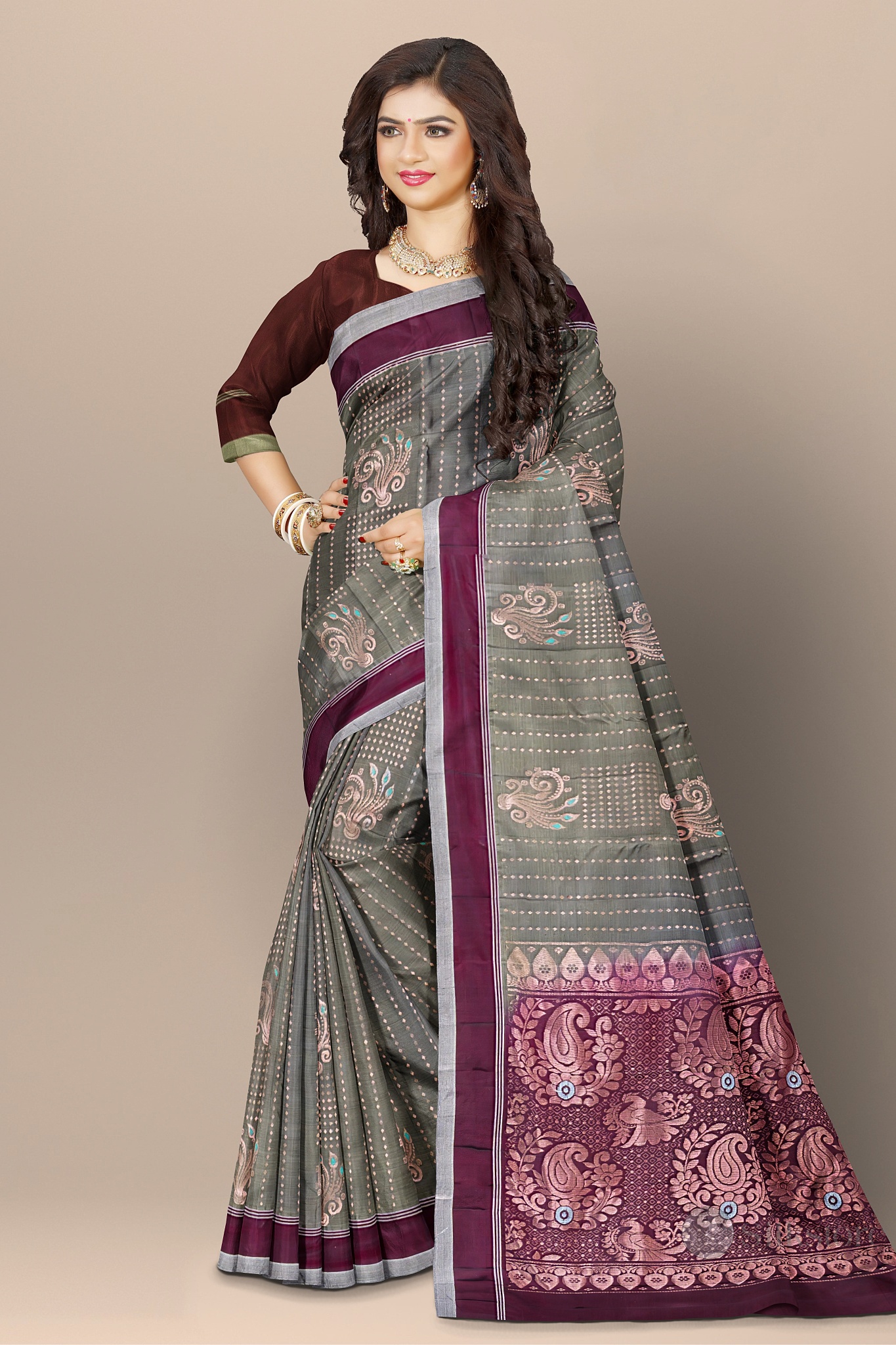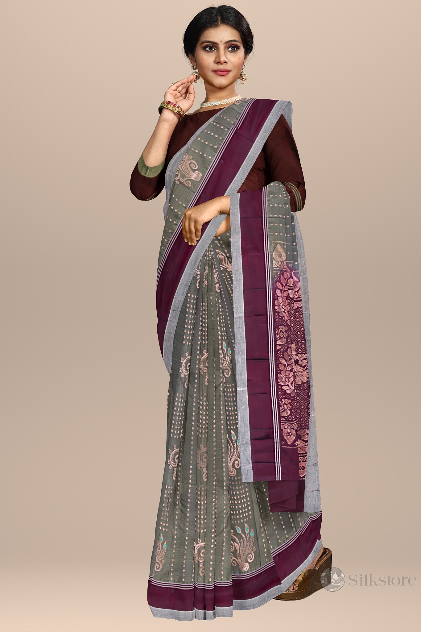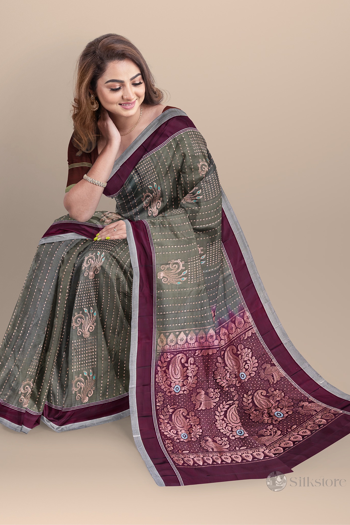 Classic Maroon and Olive Handwoven Saree