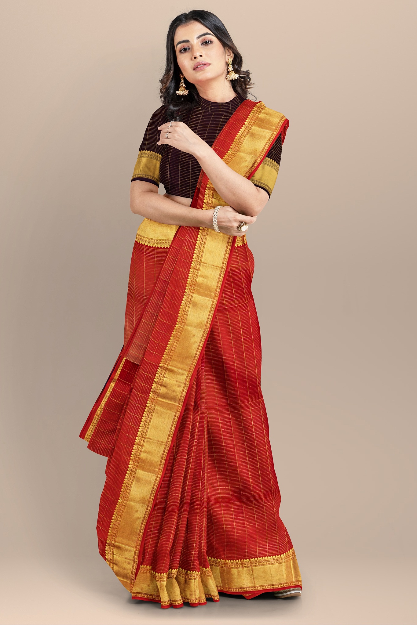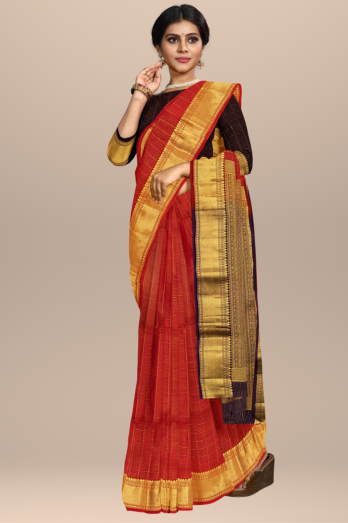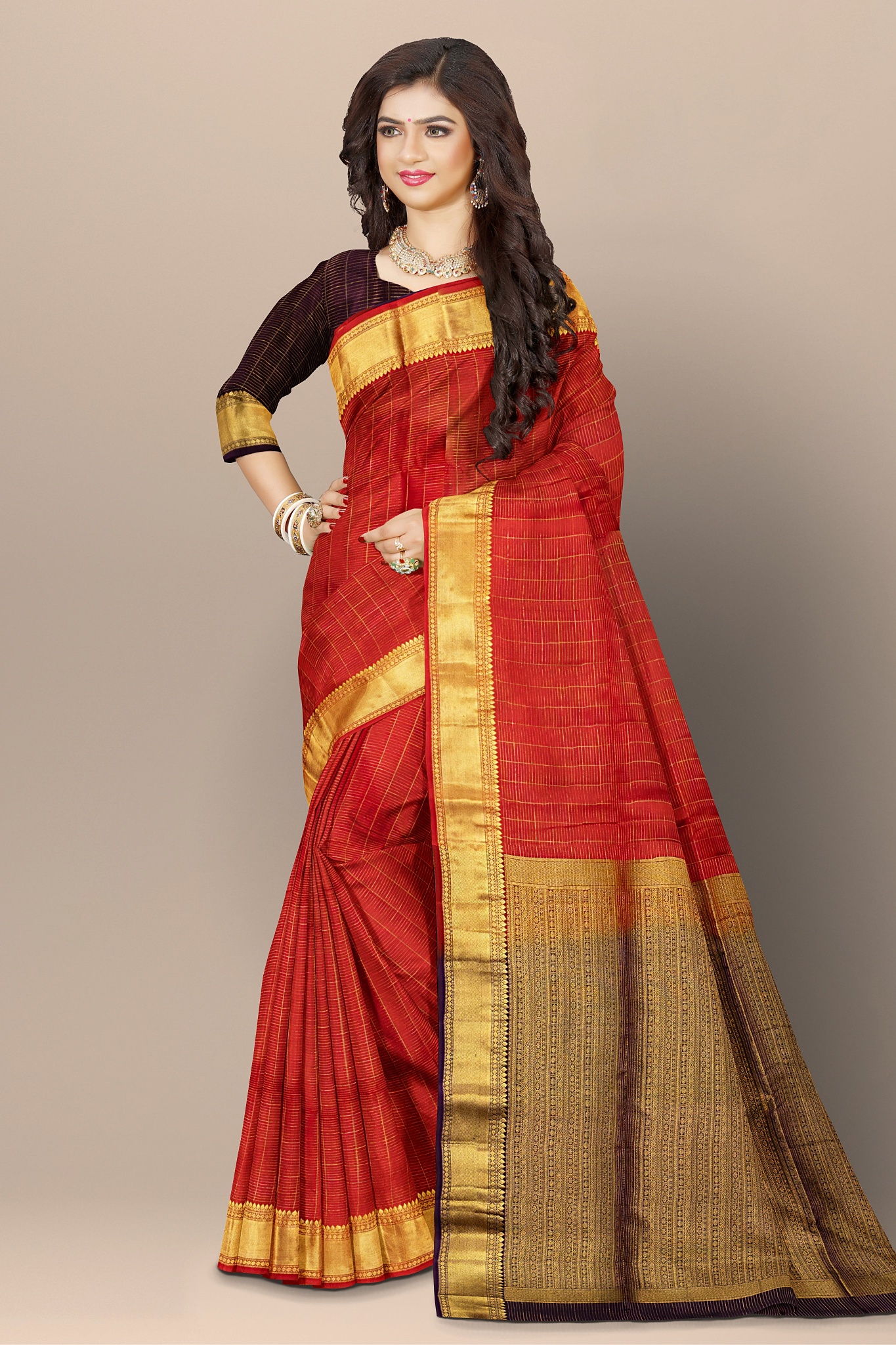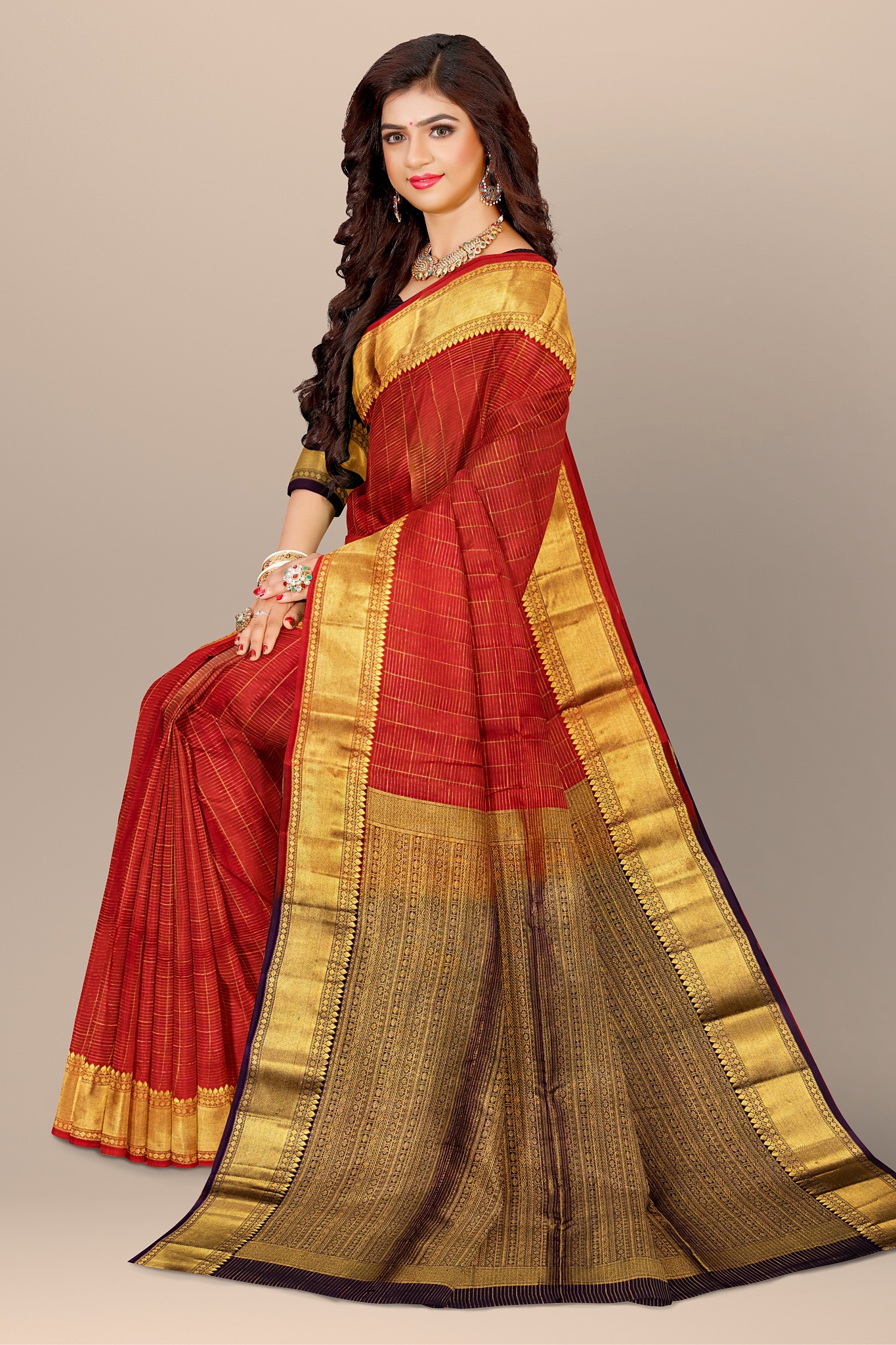 Divine Red and Gold Woven Silk Saree