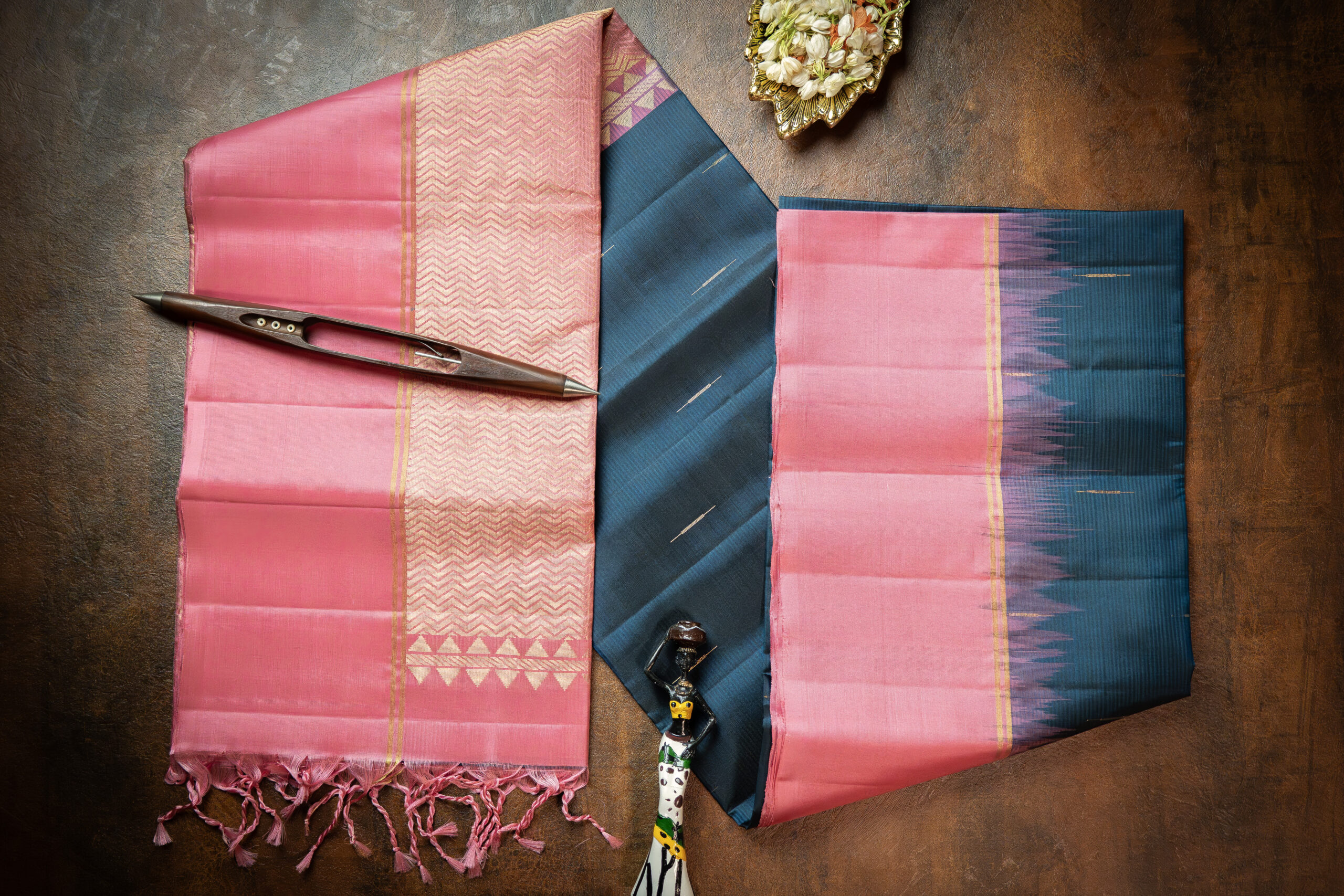 Dual Tone Serenity Blended with Pink & Blue Silk Saree