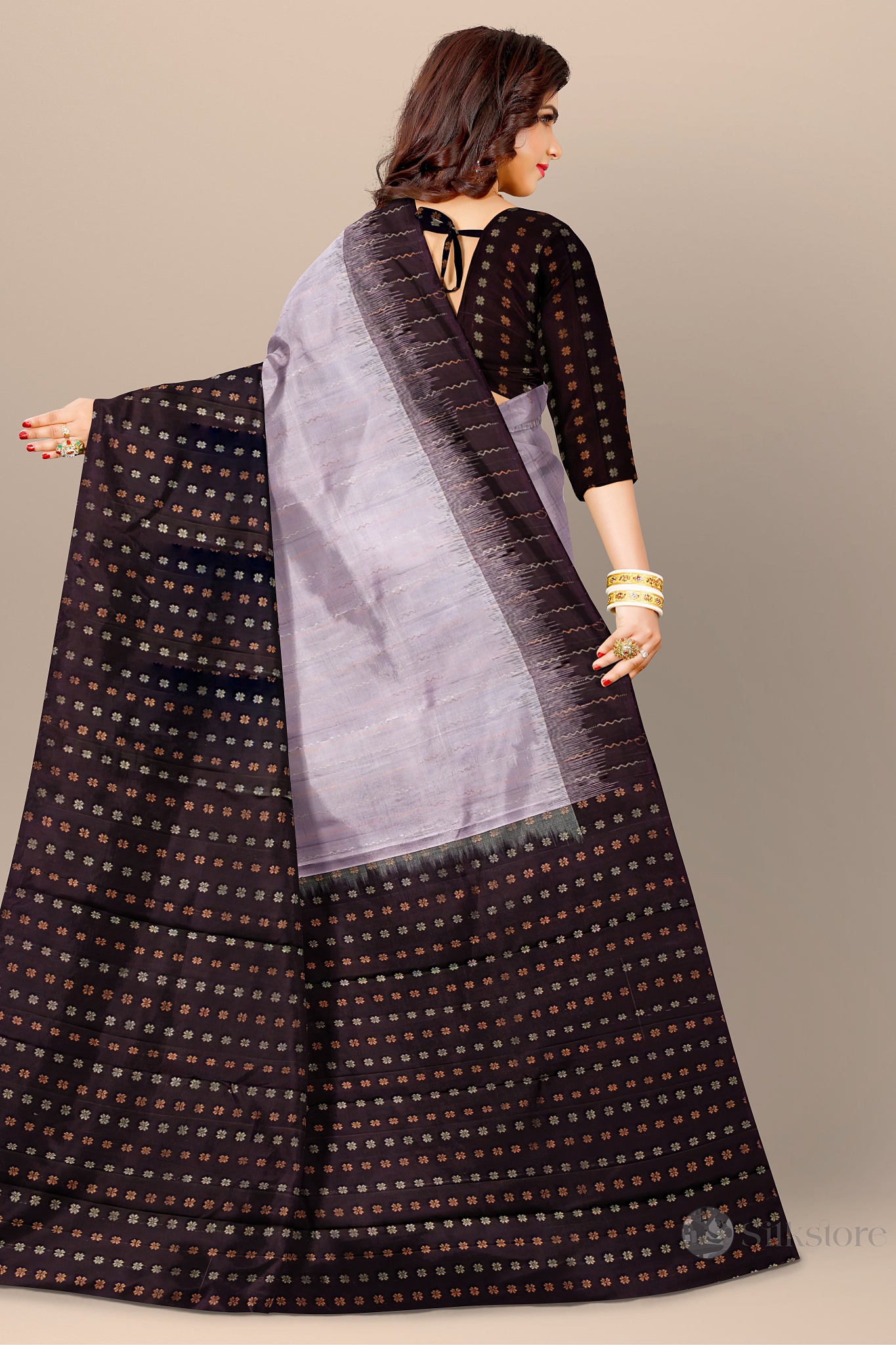 Elegant Black and Grey Silk Saree