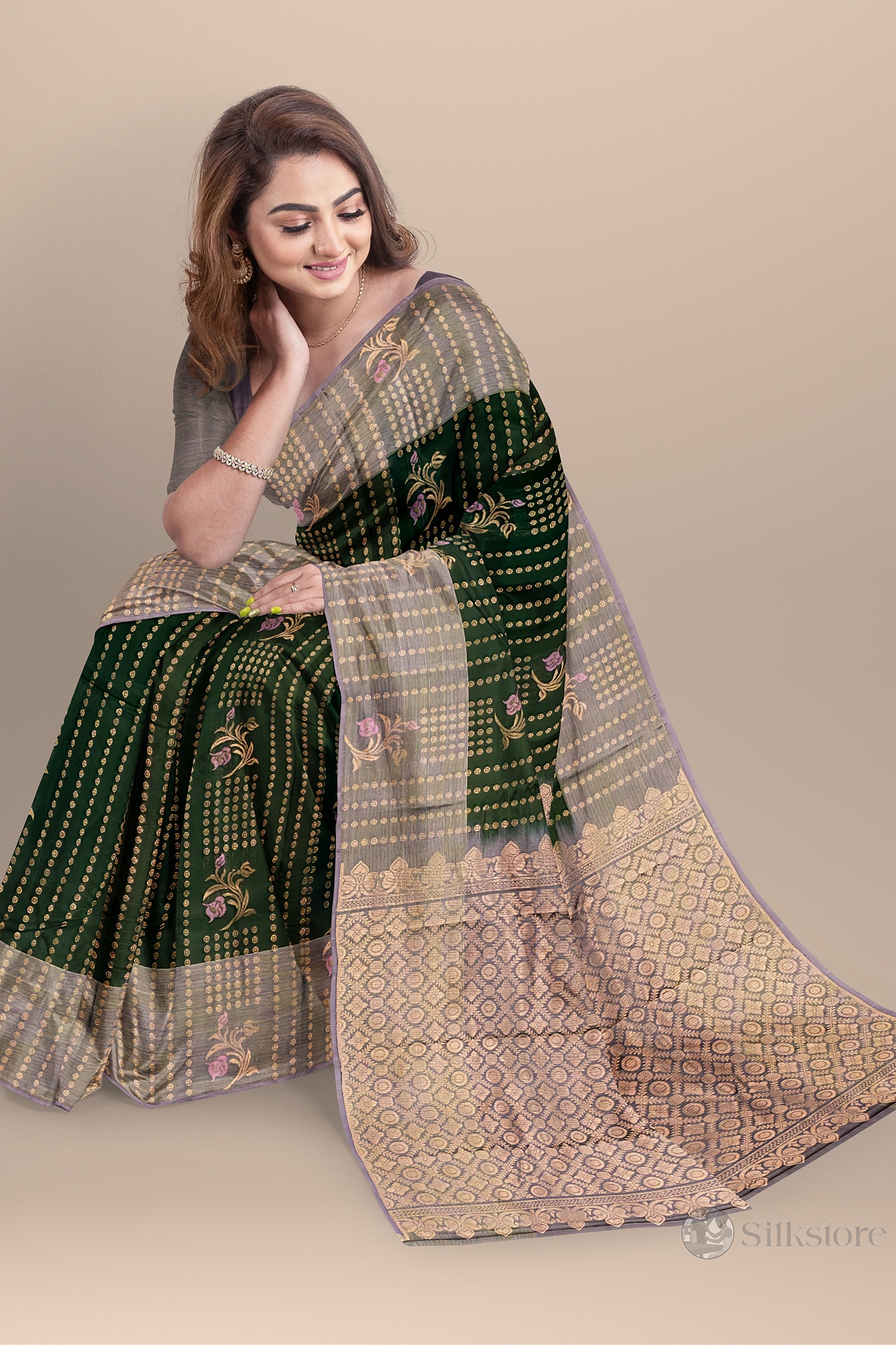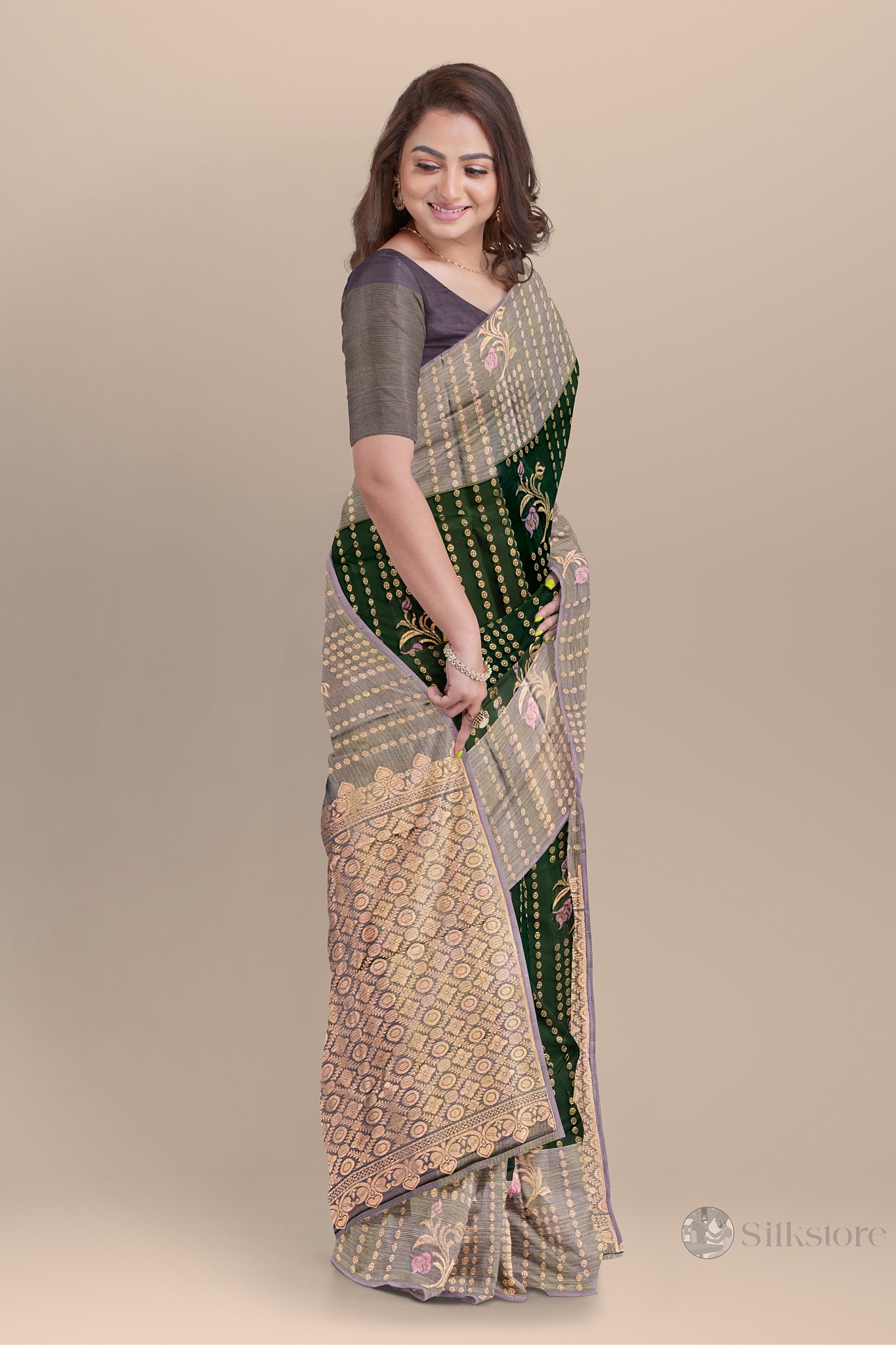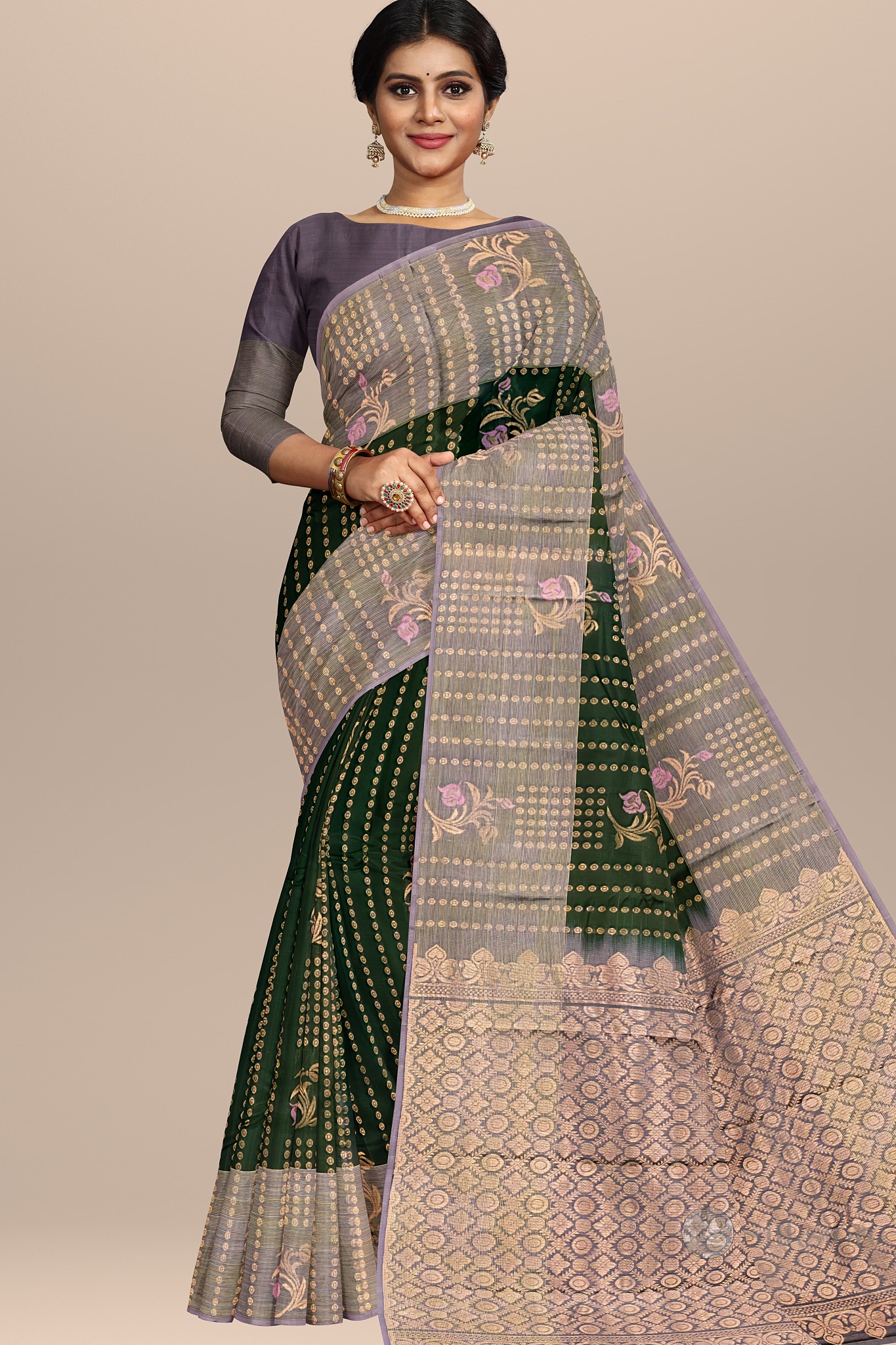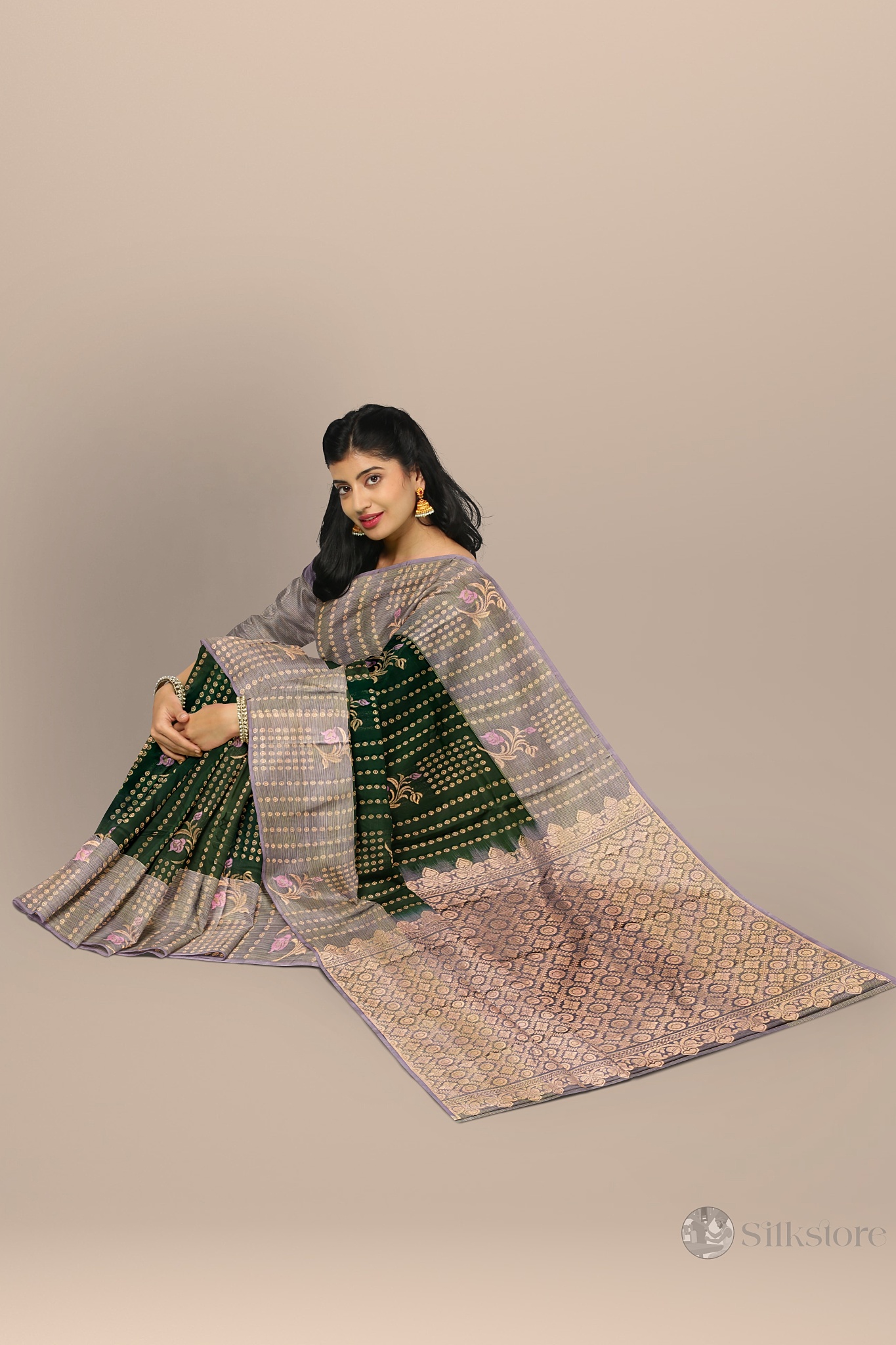 Graceful Green and Lavender Kanjivaram Handwoven Saree