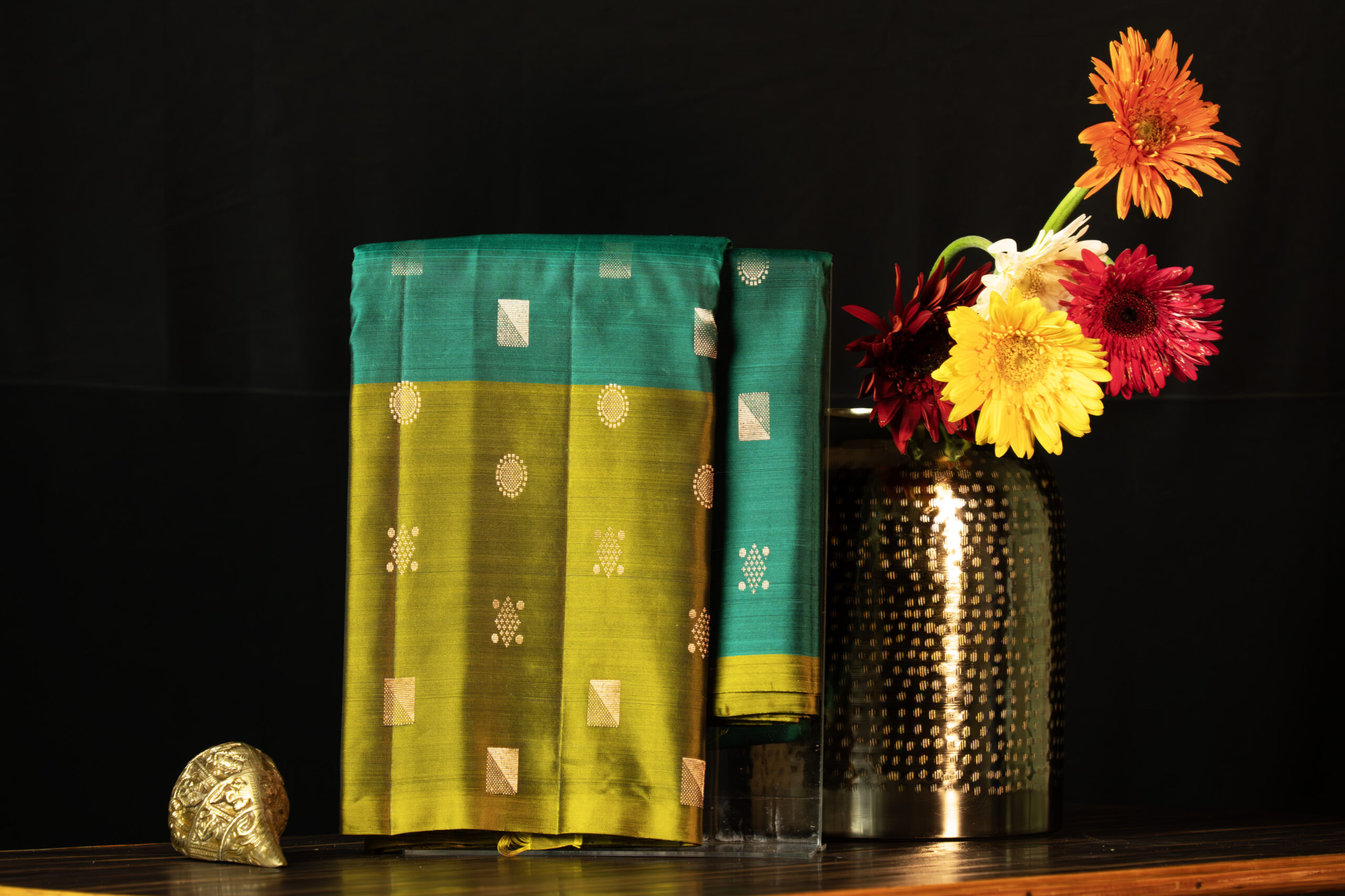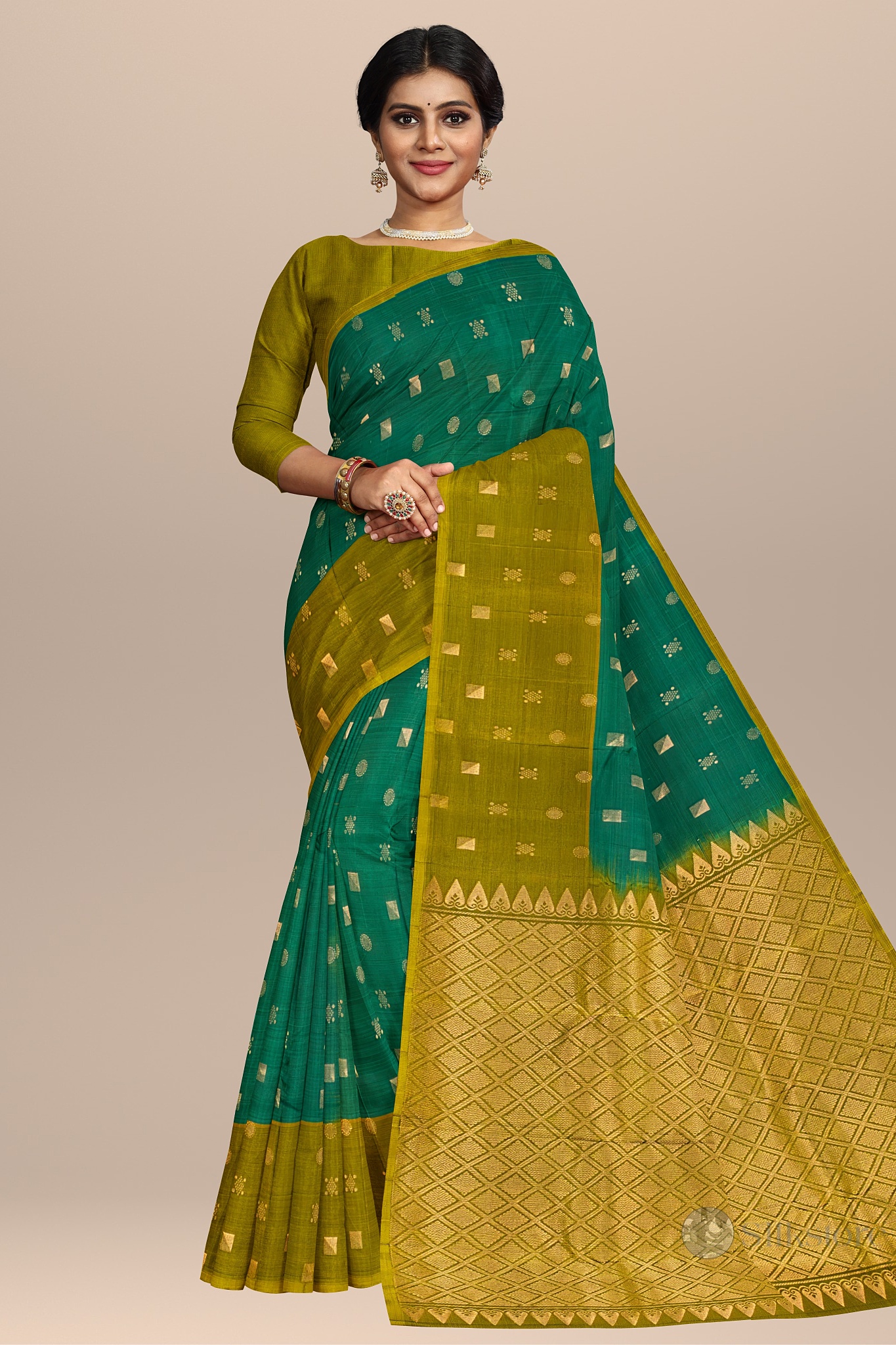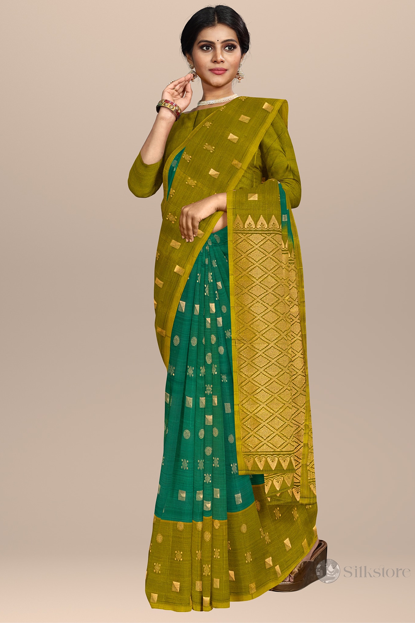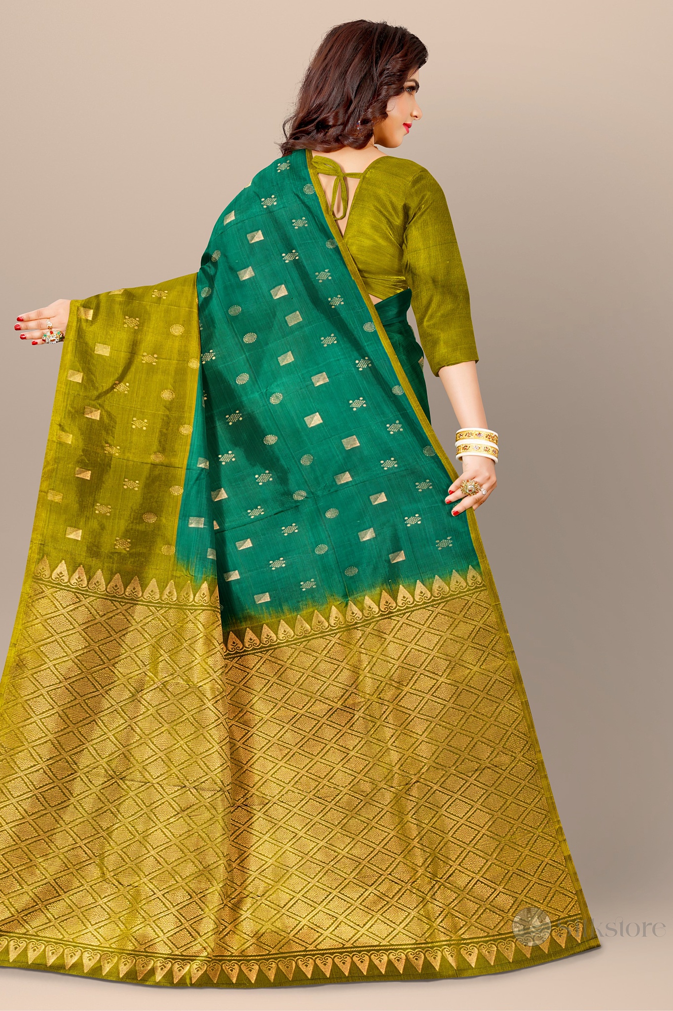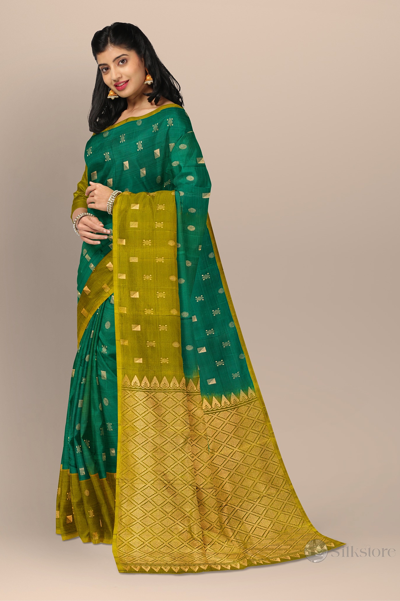 Classic Grace Handwoven Saree in Forest Green and Midnight Blue