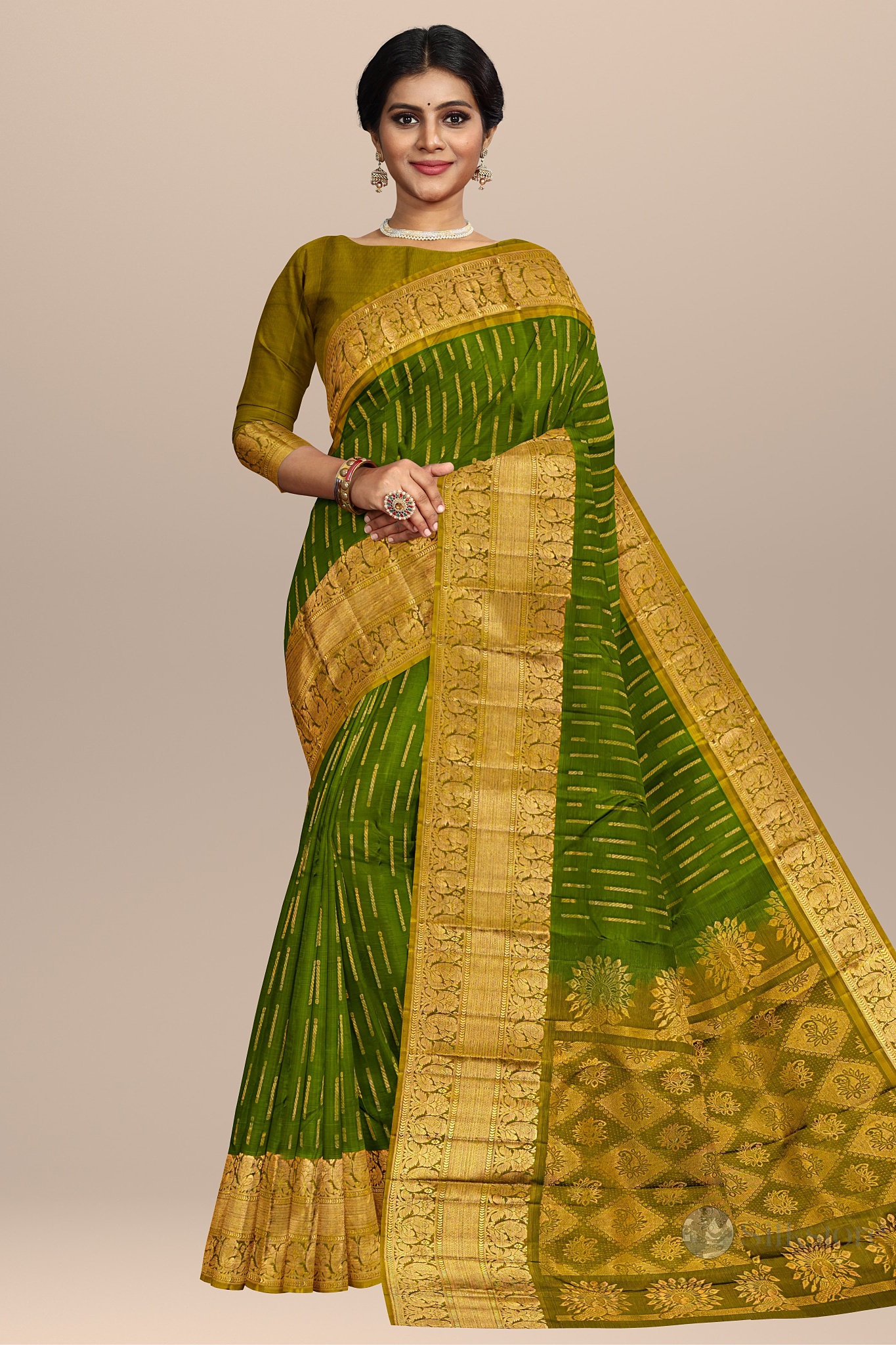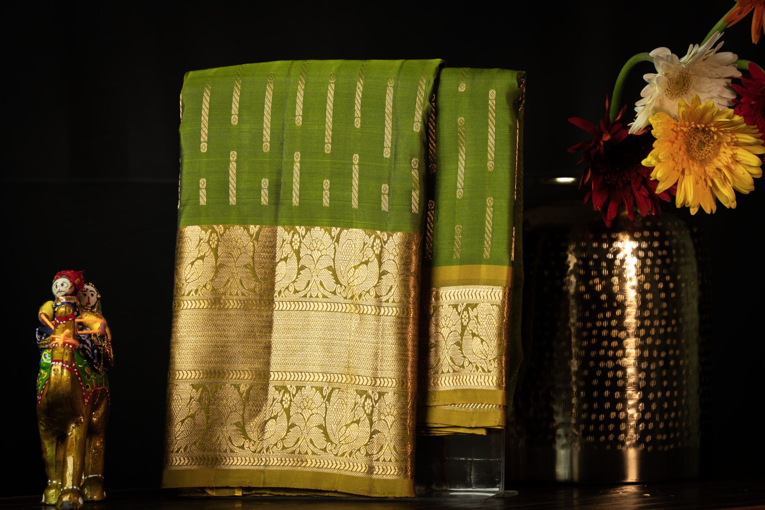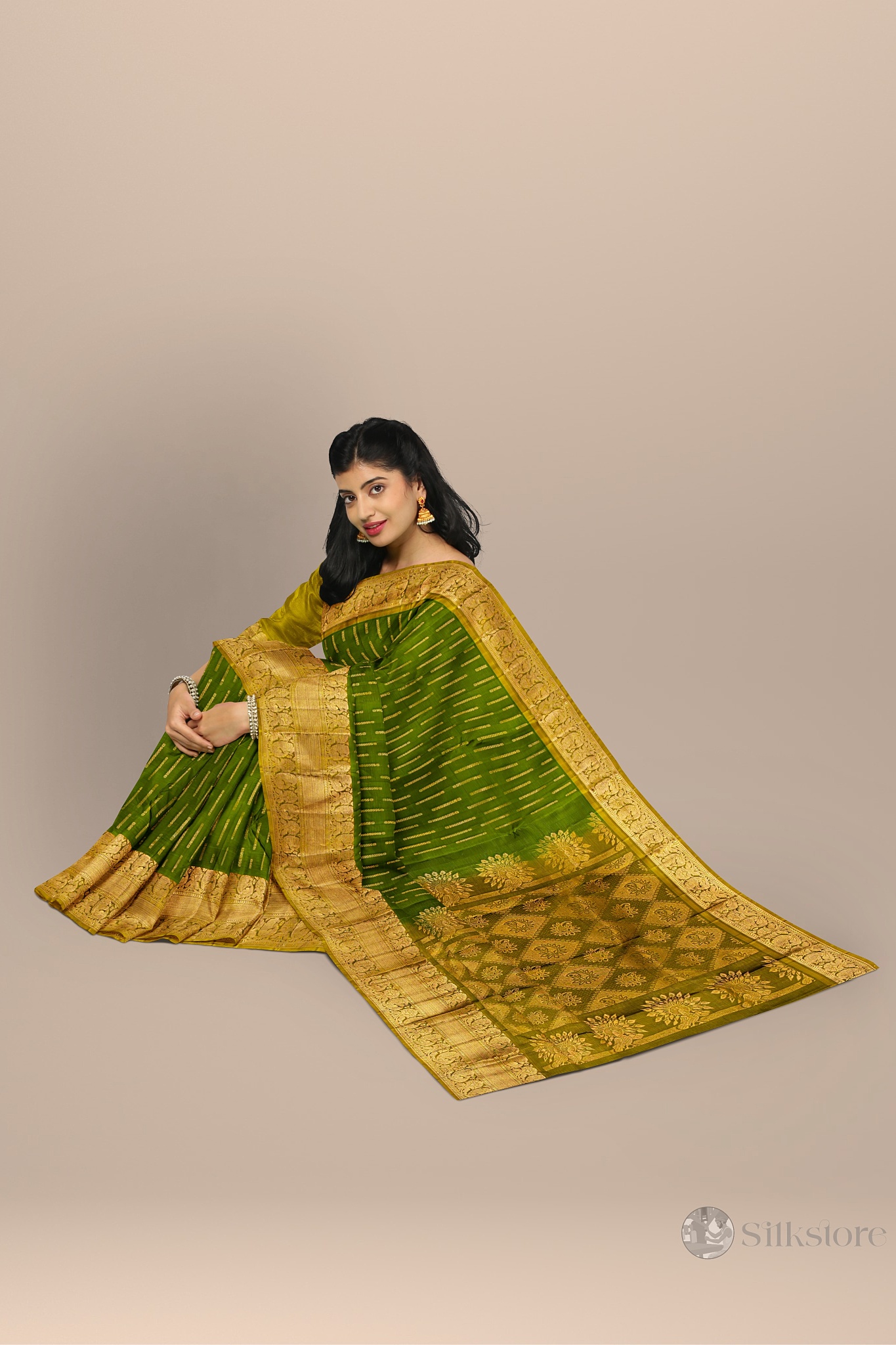 Graceful Green and Lavender Kanjivaram Handwoven Saree