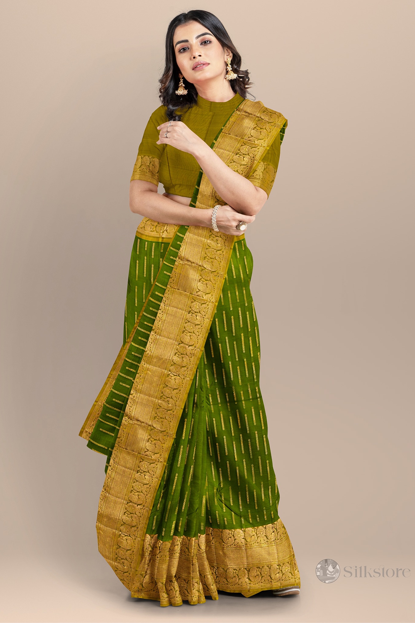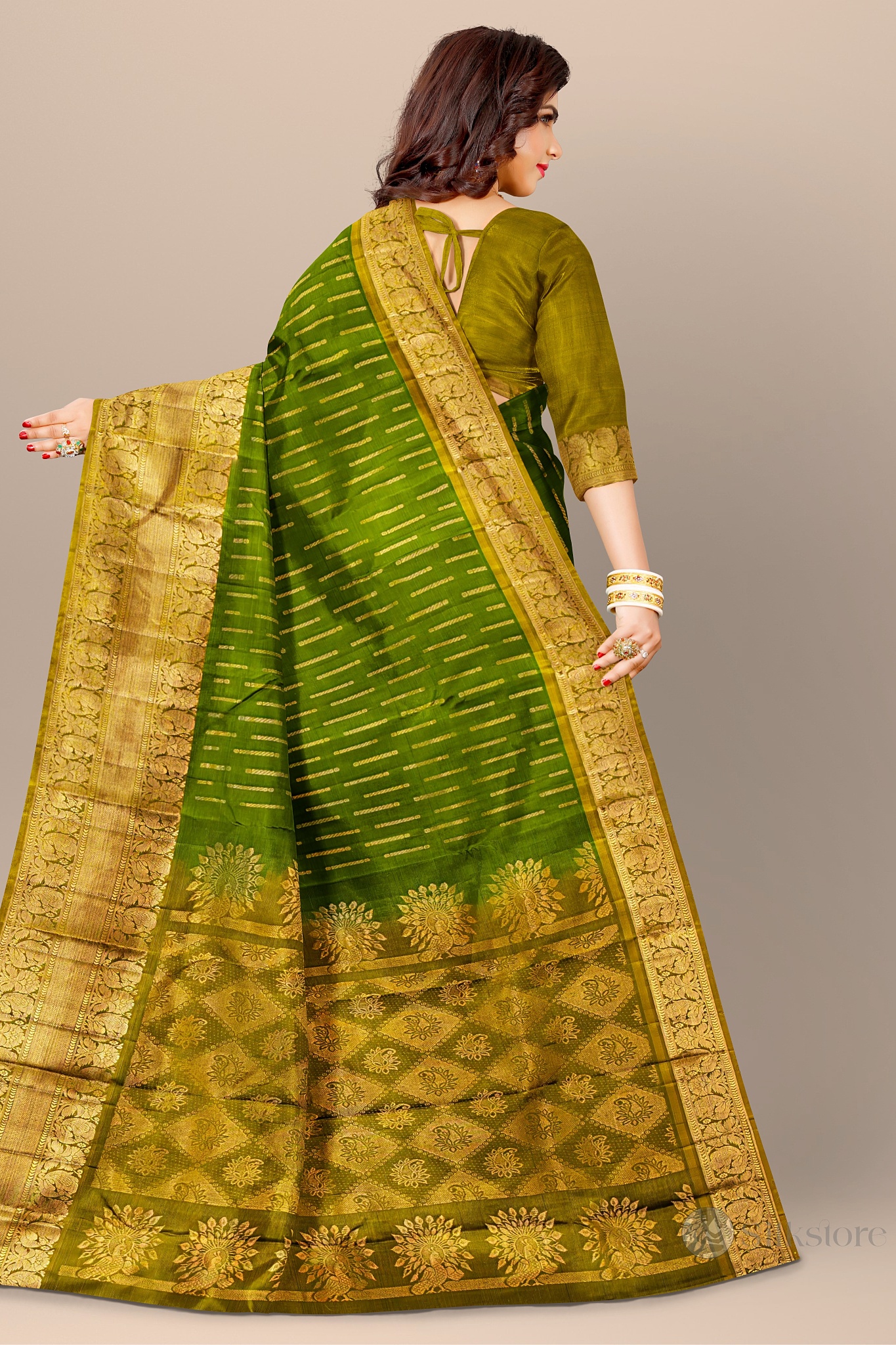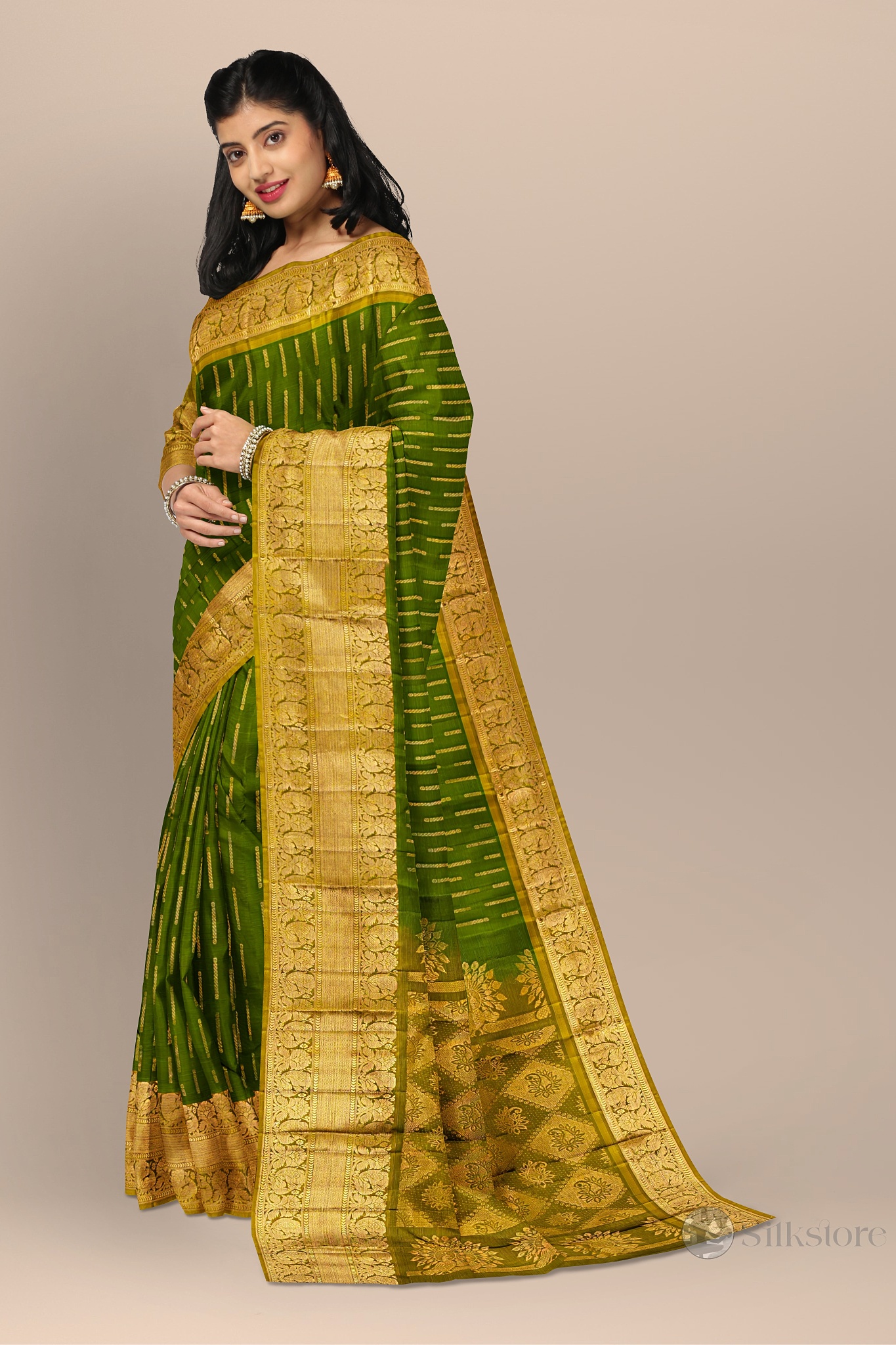 Graceful Green and Lavender Kanjivaram Handwoven Saree