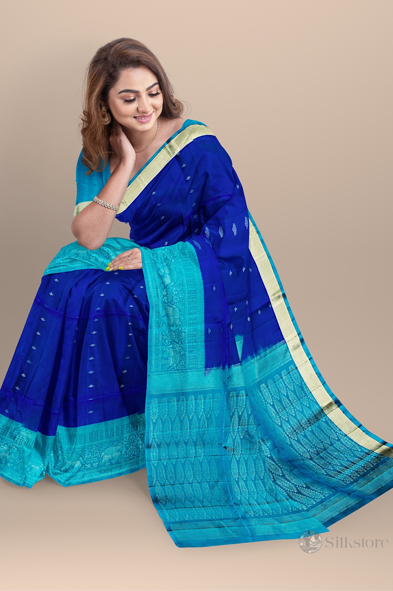 Green & Sapphire Heritage Silk Saree