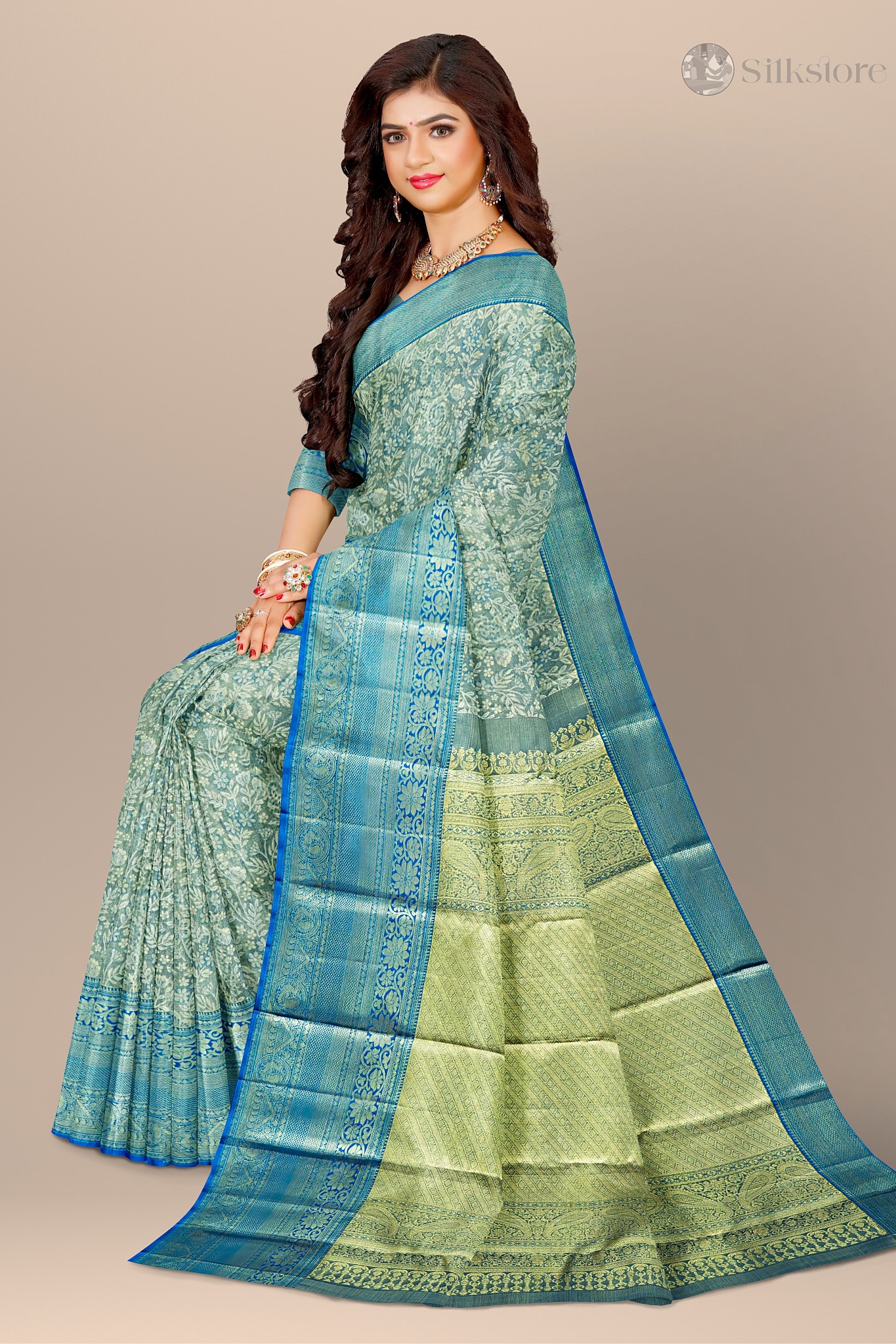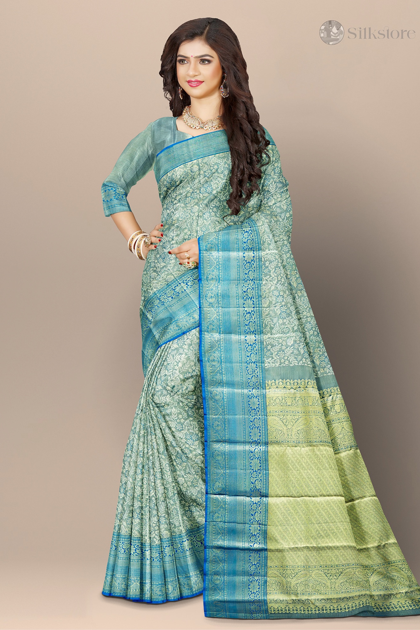Charcoal Olive Luxe kanjivaram Silk Saree