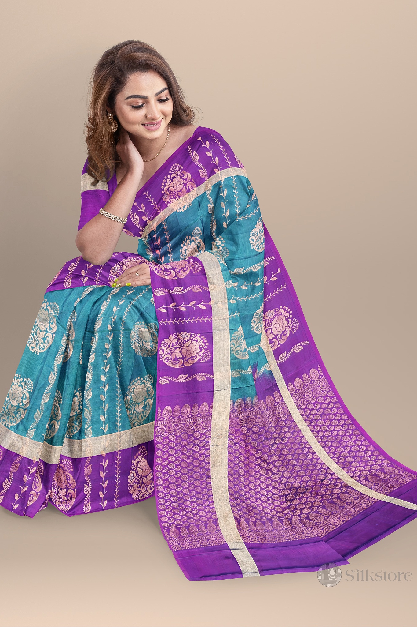 Earth and Aqua Elegance Handwoven Saree
