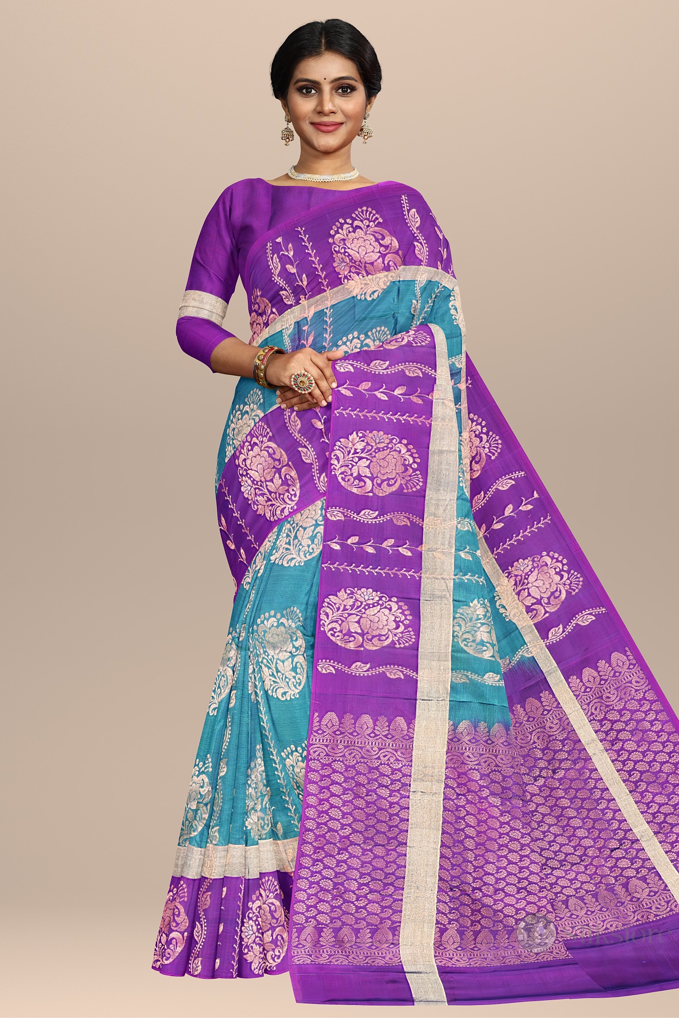 Purple and Blue Ethnic Splendor Handwoven Saree