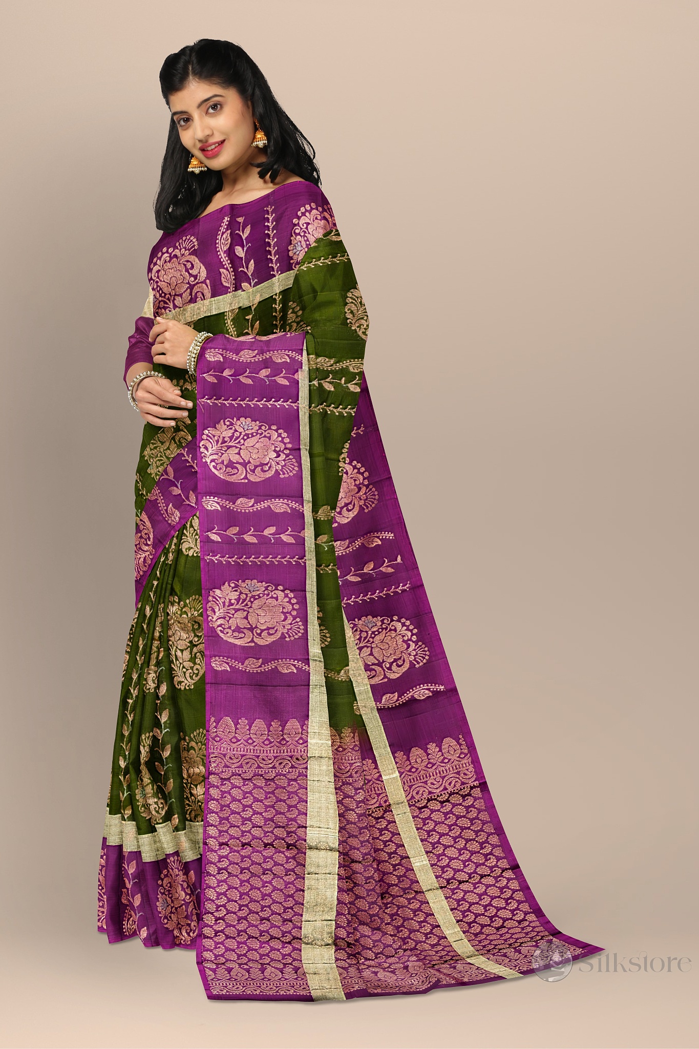 Classic Maroon and Olive Handwoven Saree